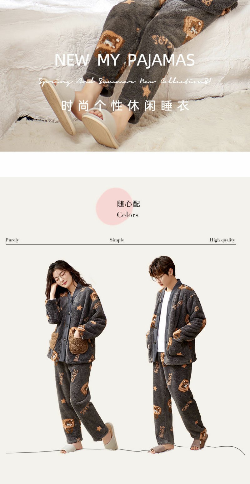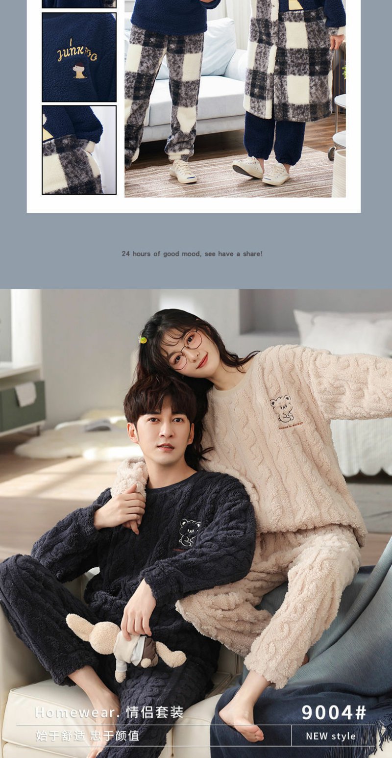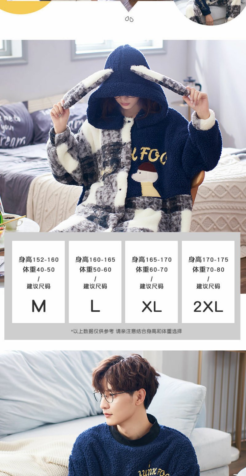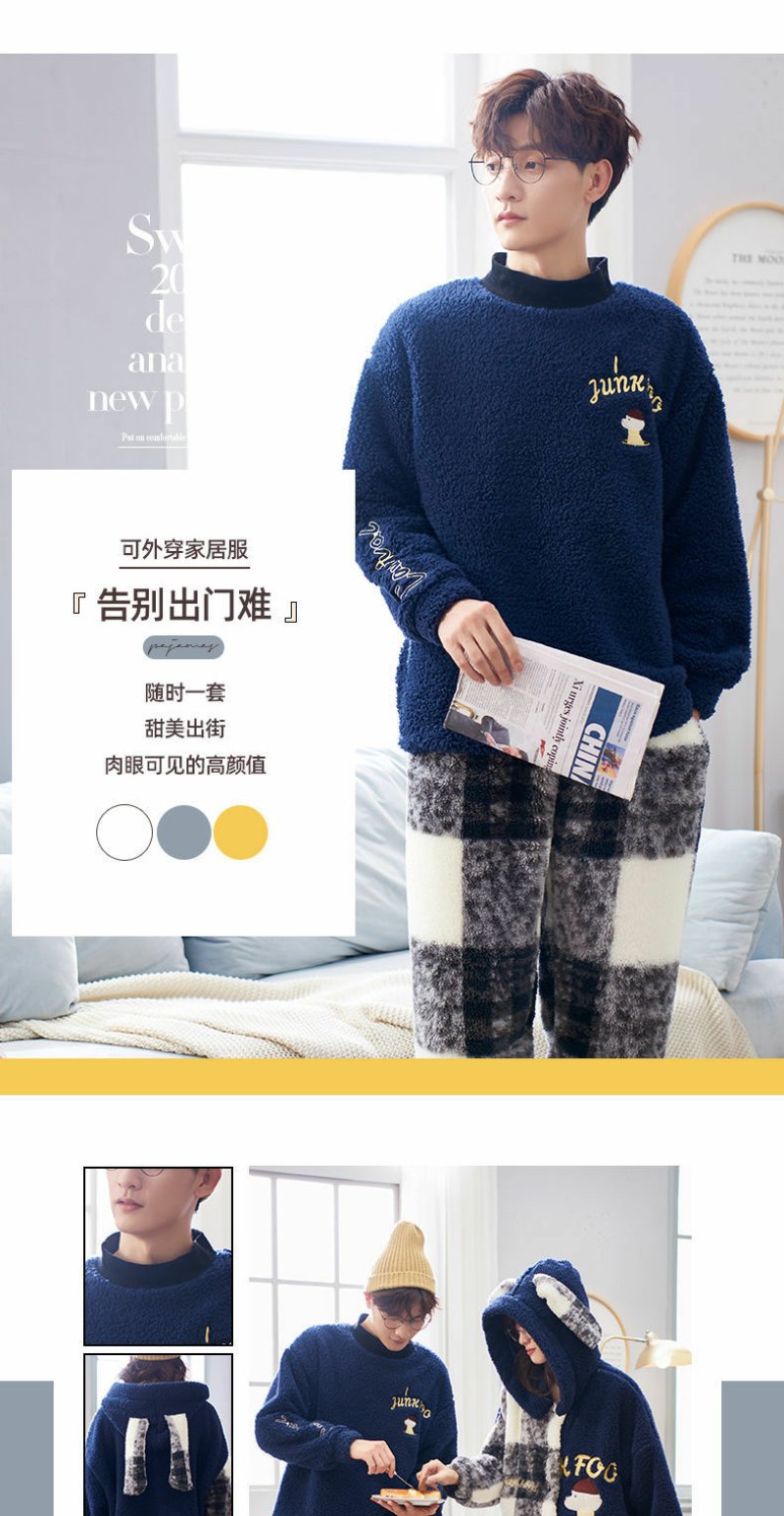 珊瑚绒情侣睡衣女秋冬新款可爱韩版加厚加绒高档男士家居服可外穿