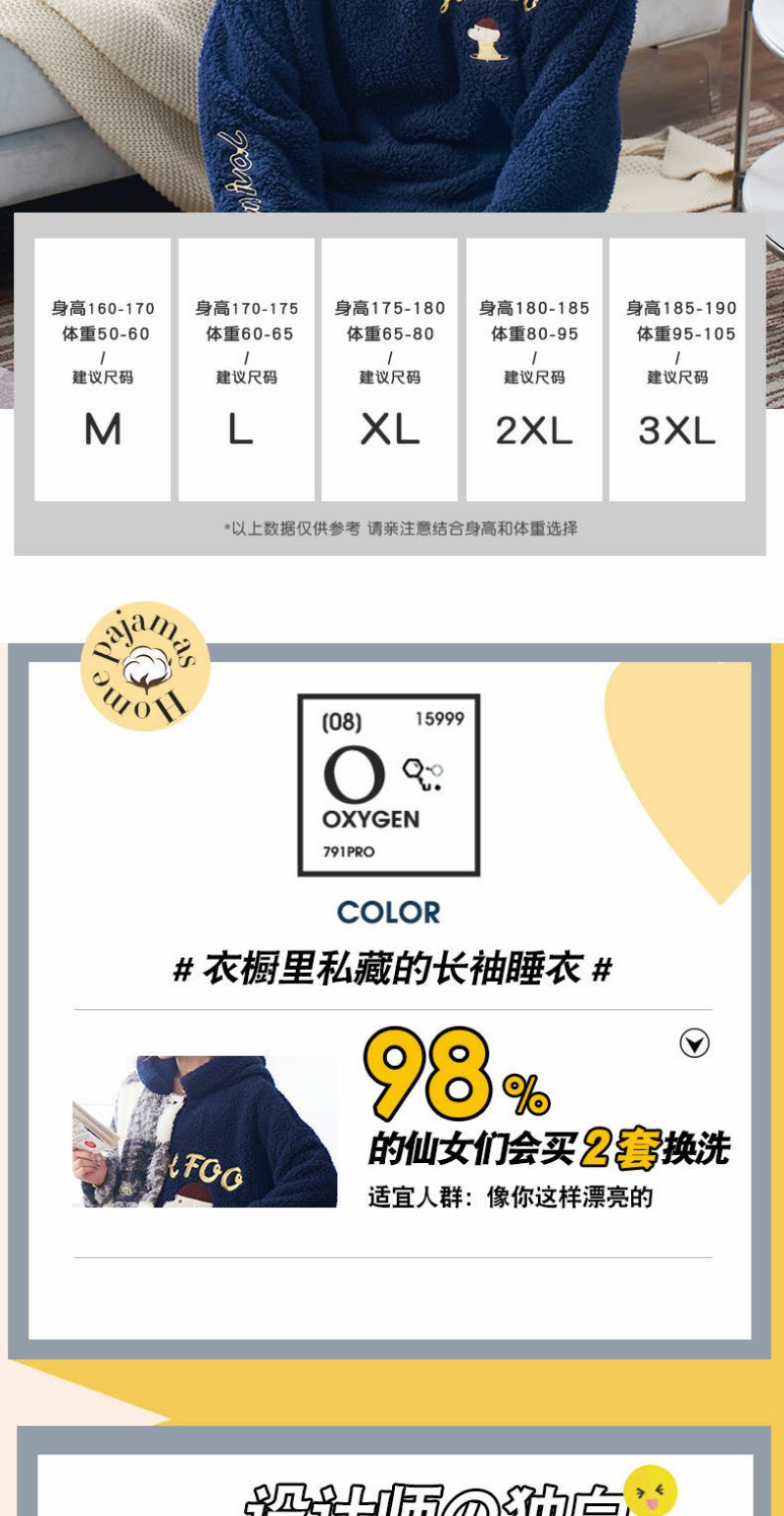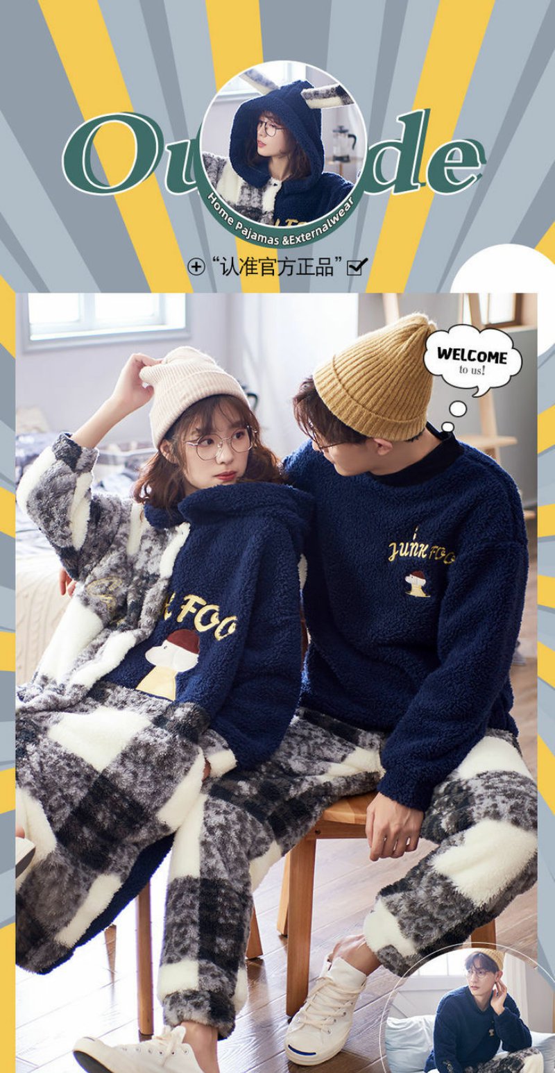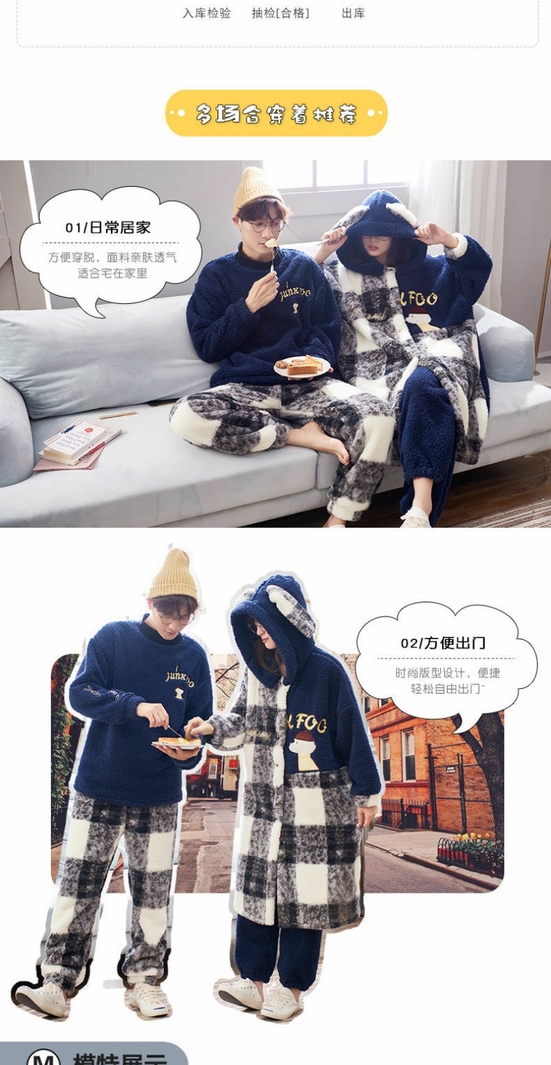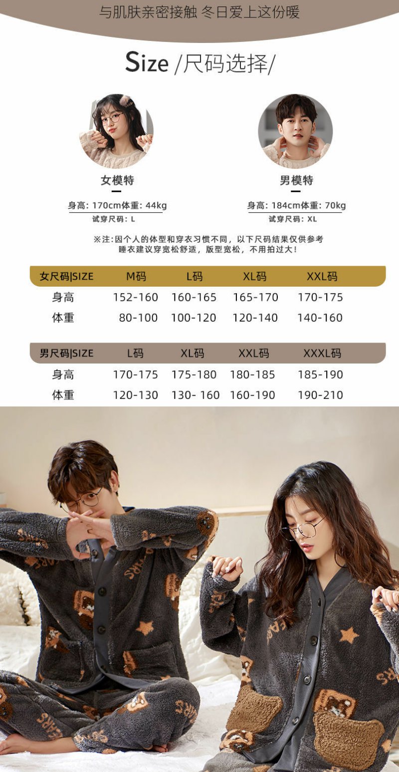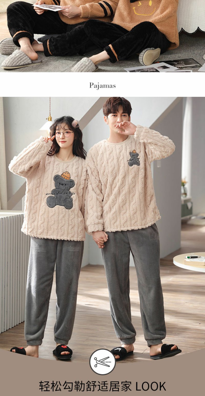 珊瑚绒情侣睡衣女秋冬新款可爱韩版加厚加绒高档男士家居服可外穿