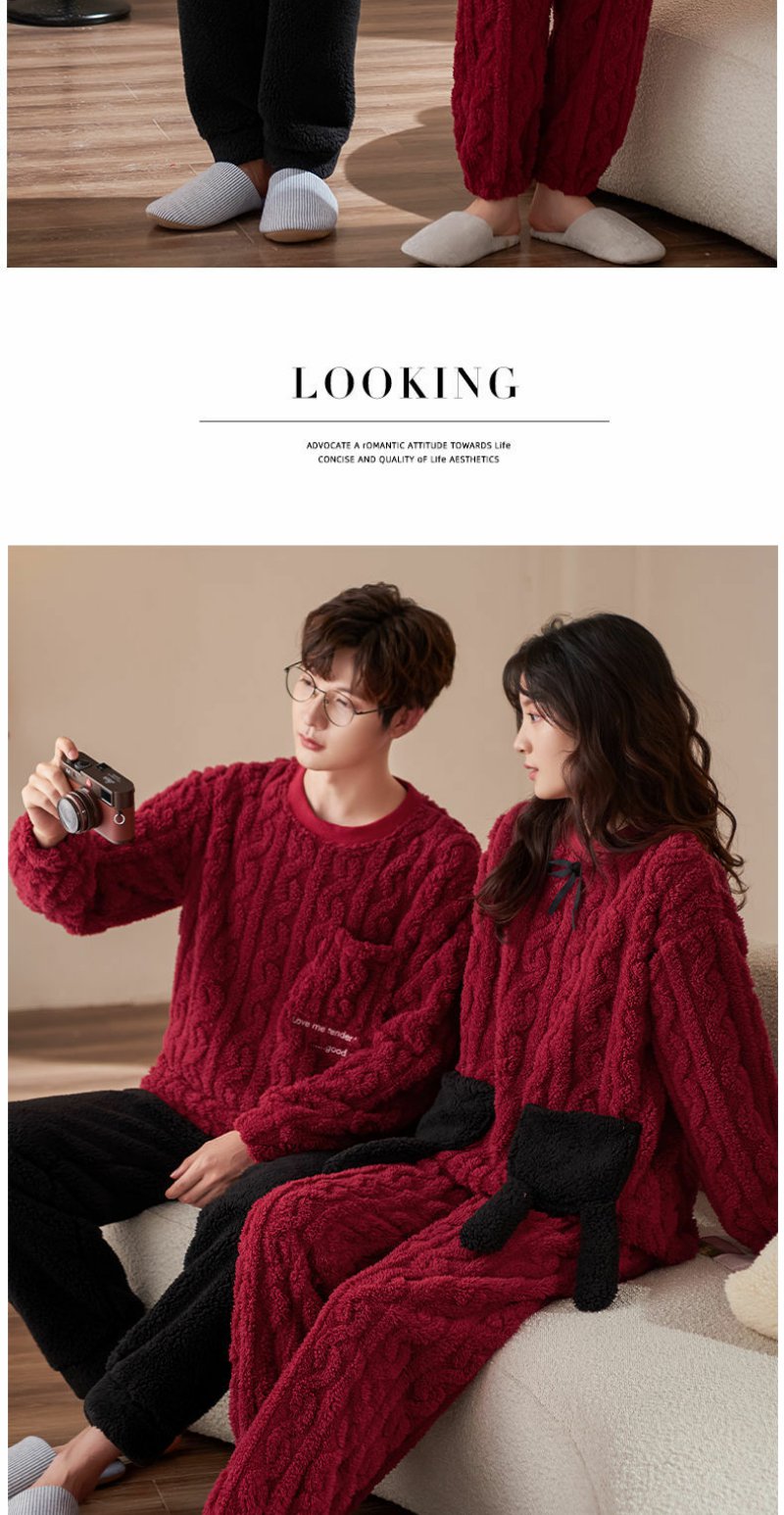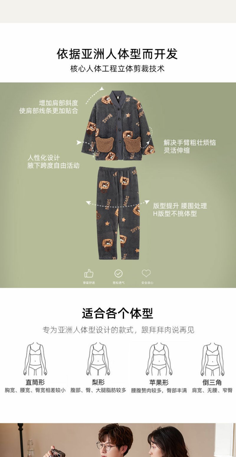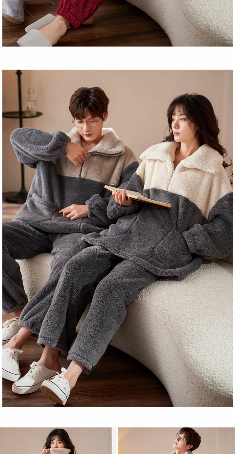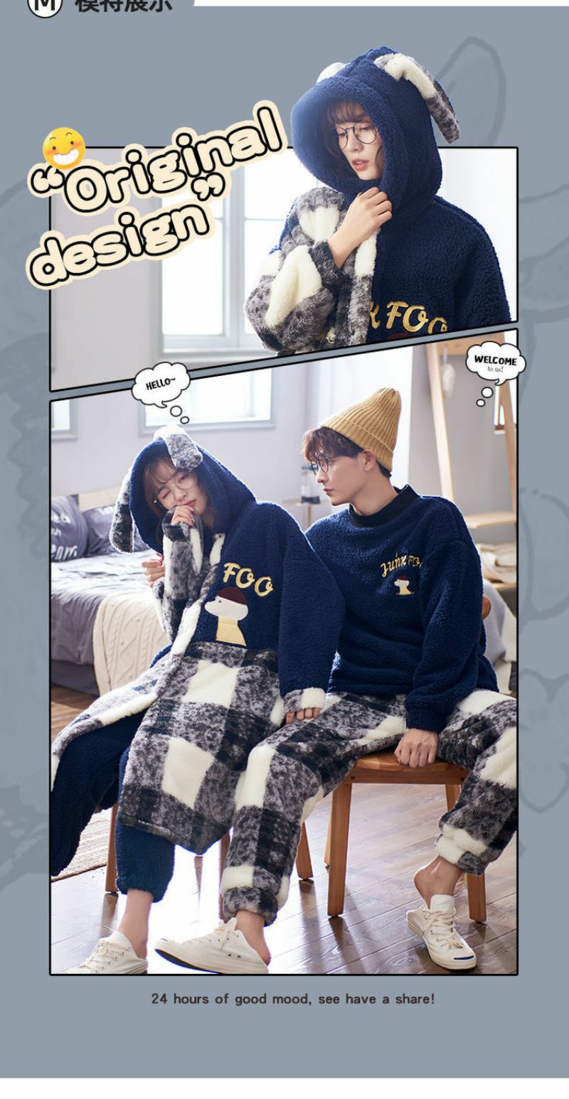 珊瑚绒情侣睡衣女秋冬新款可爱韩版加厚加绒高档男士家居服可外穿