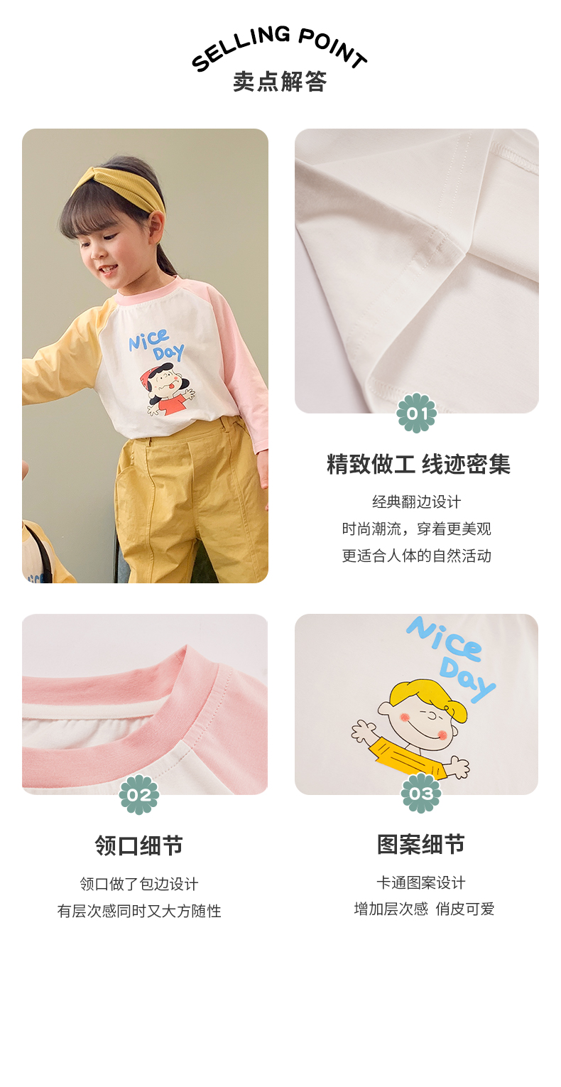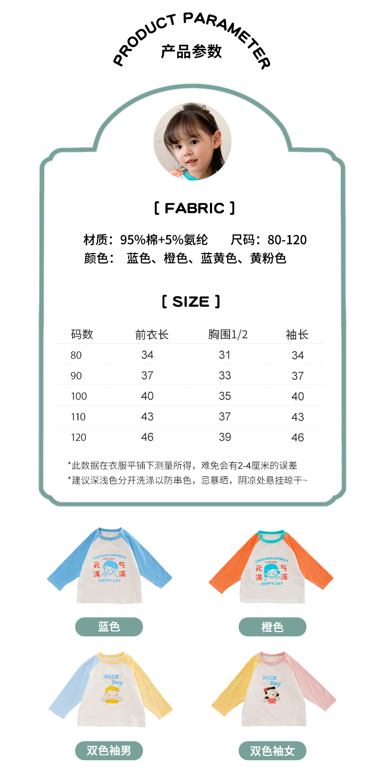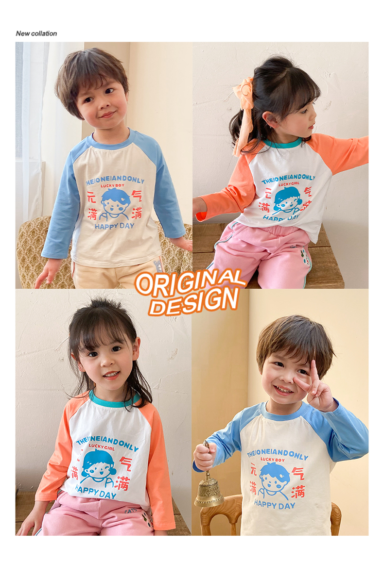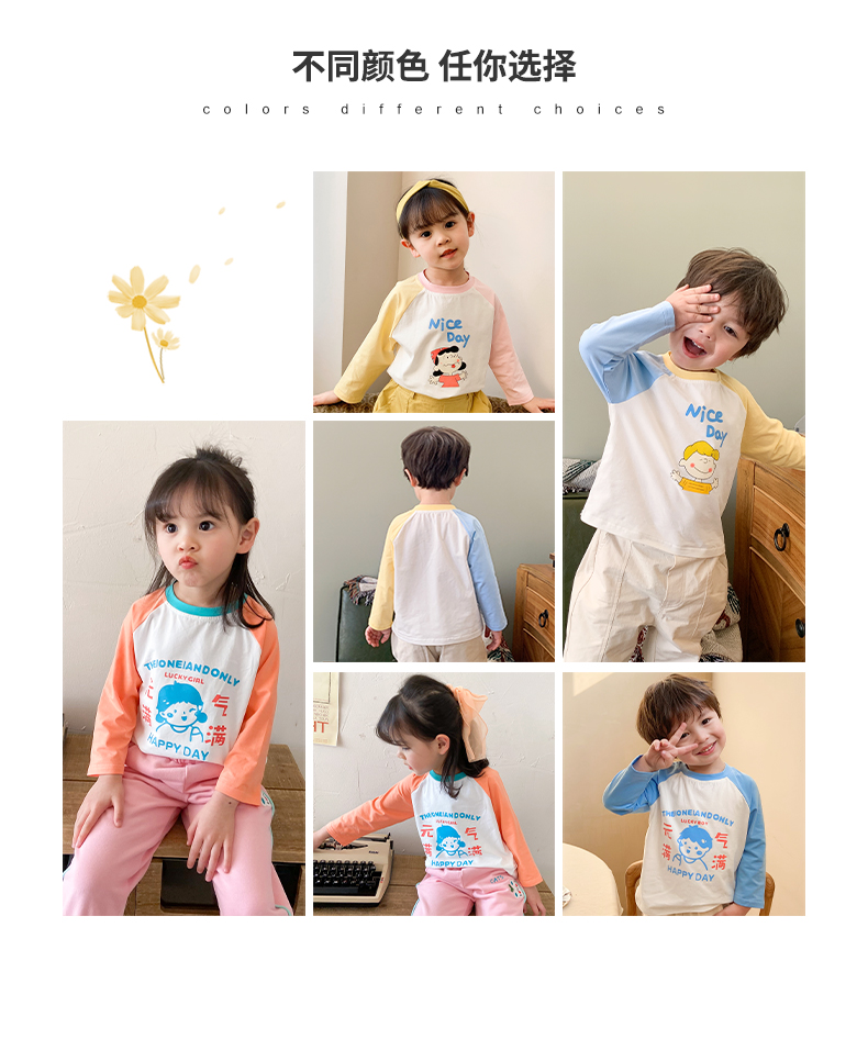 龙之涵 2021春秋薄款撞色插肩长袖T恤 中小童套头上衣 婴幼儿A类标准【合集】