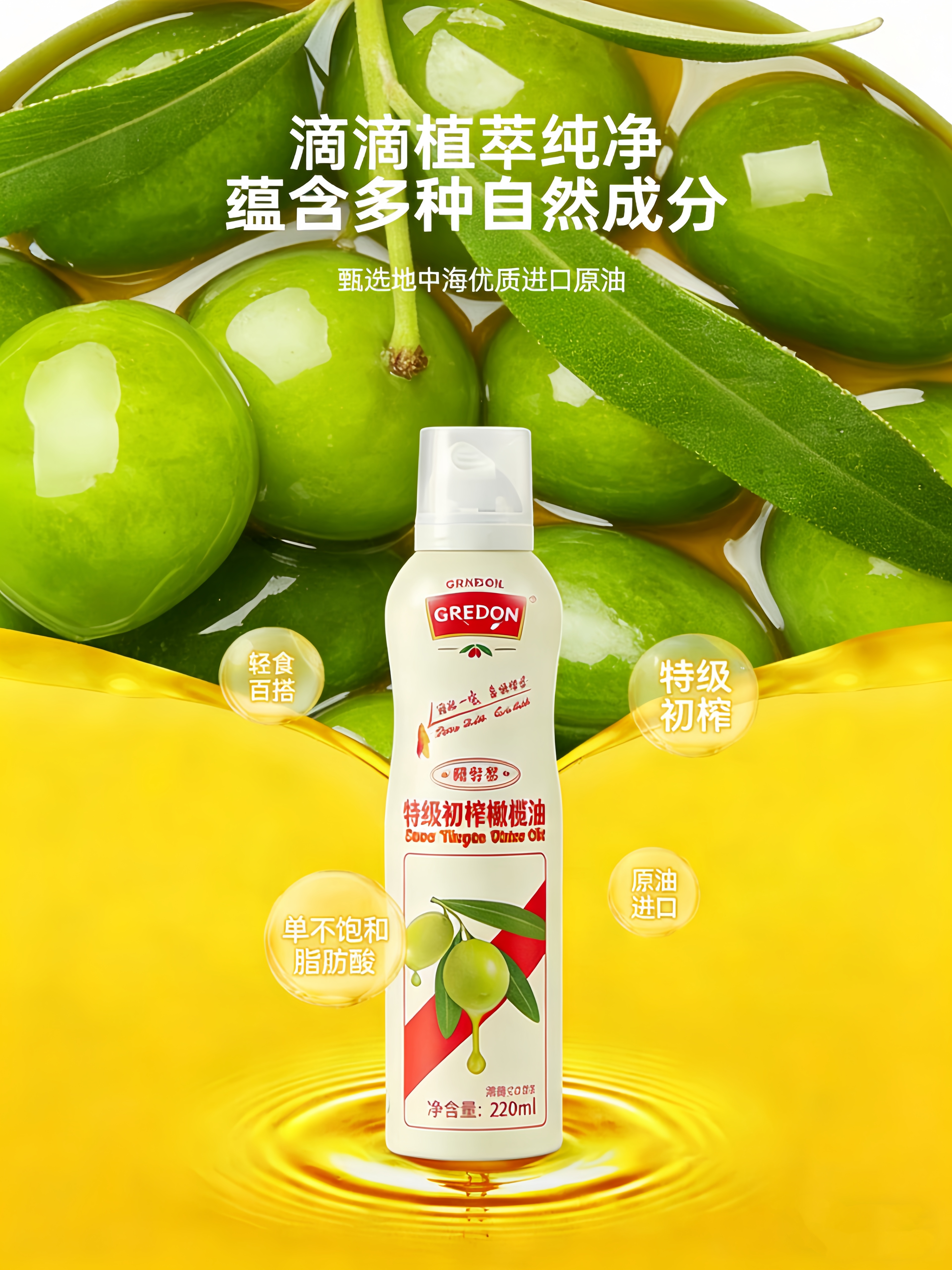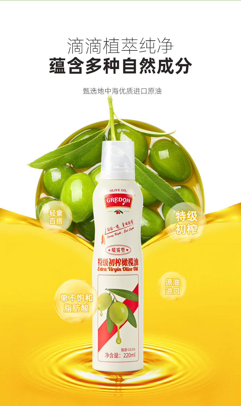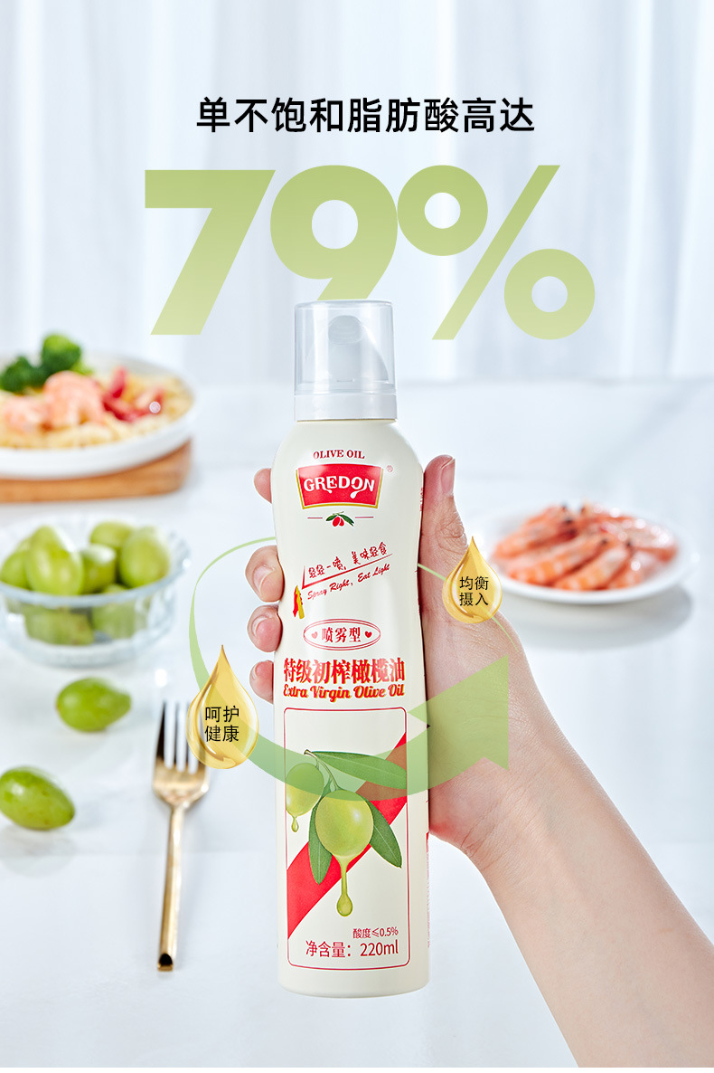 不打烊~【喷雾型】西班牙进口特级初榨橄榄油 轻食减脂健身食用油 无添加剂!