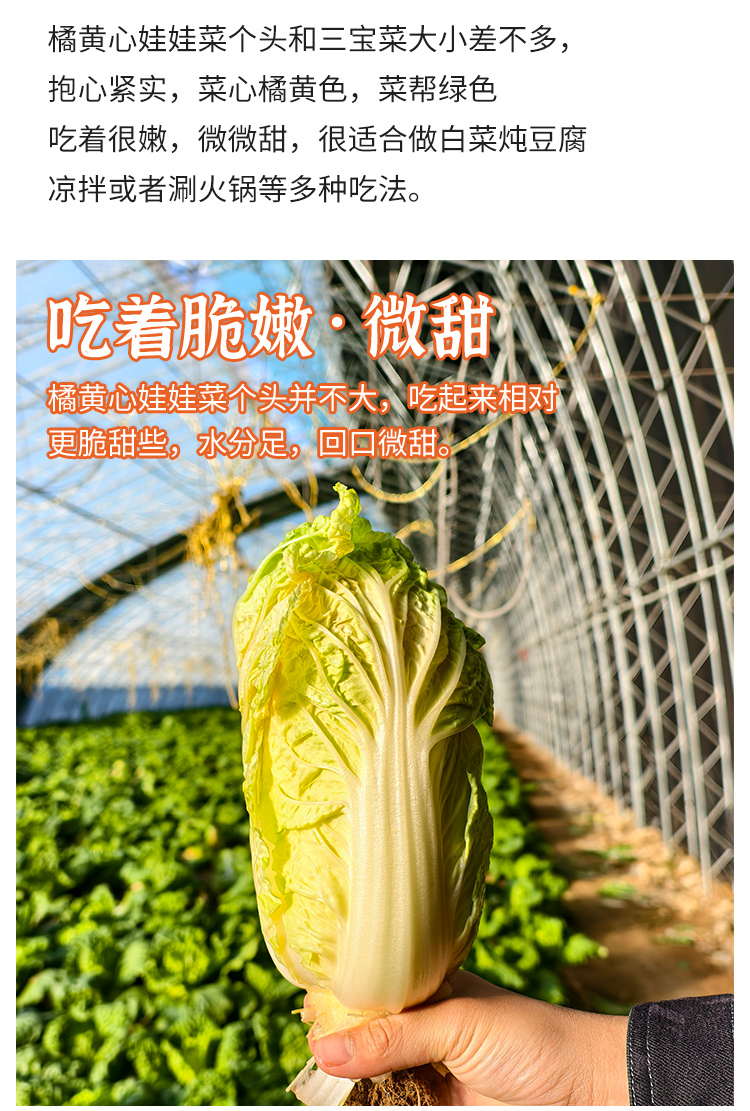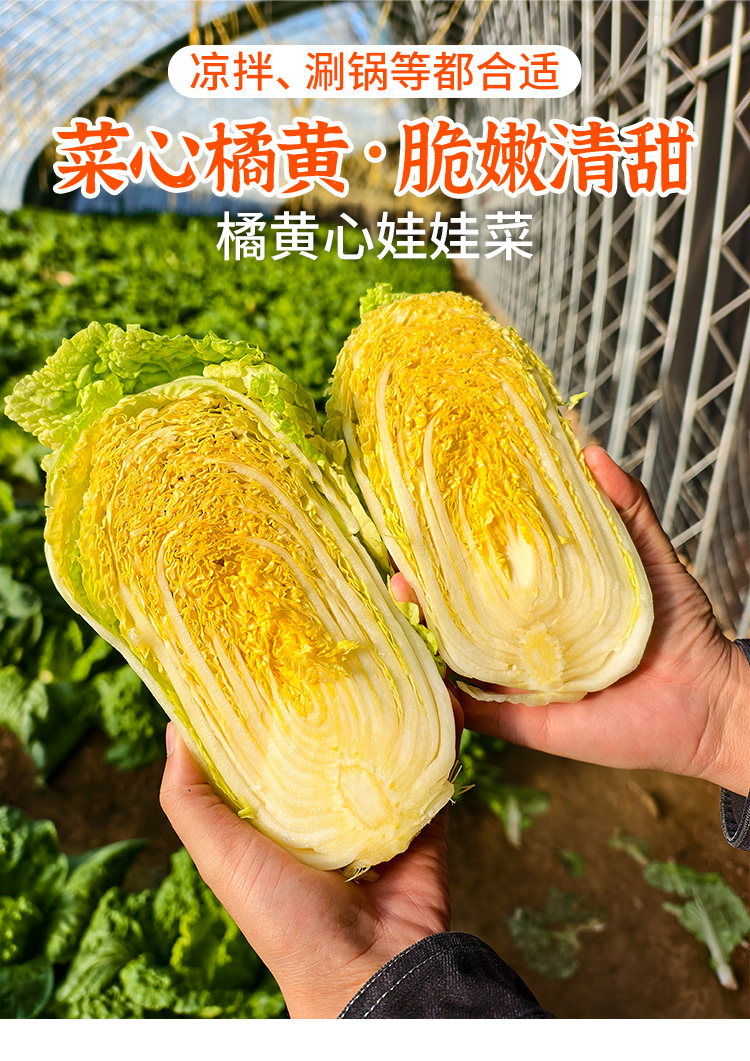 密农人家 橘黄心娃娃菜 农家青菜 新鲜蔬菜 菜心橘黄 脆嫩清甜
