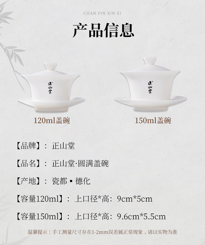 正山堂茶业 白瓷盖碗瓷都德化120ml/150ml茶具