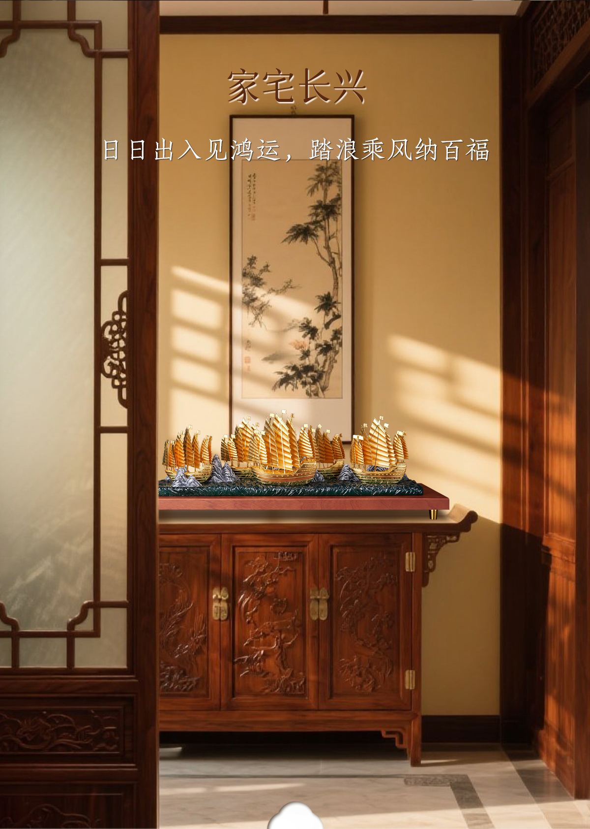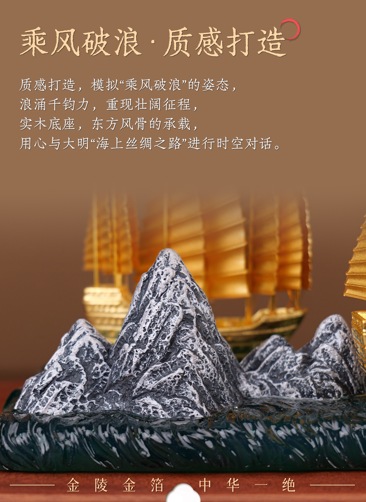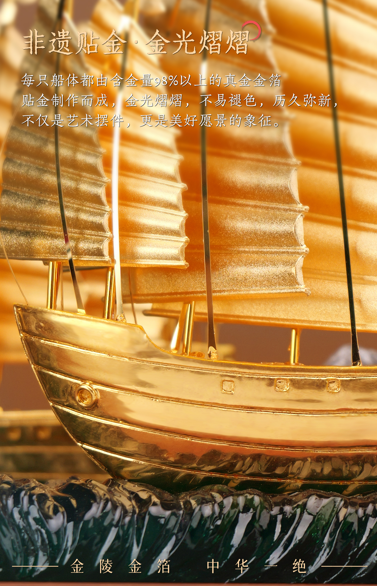 南京金陵金箔郑和下西洋宝船摆件办公桌面客厅中国风工艺品摆件
