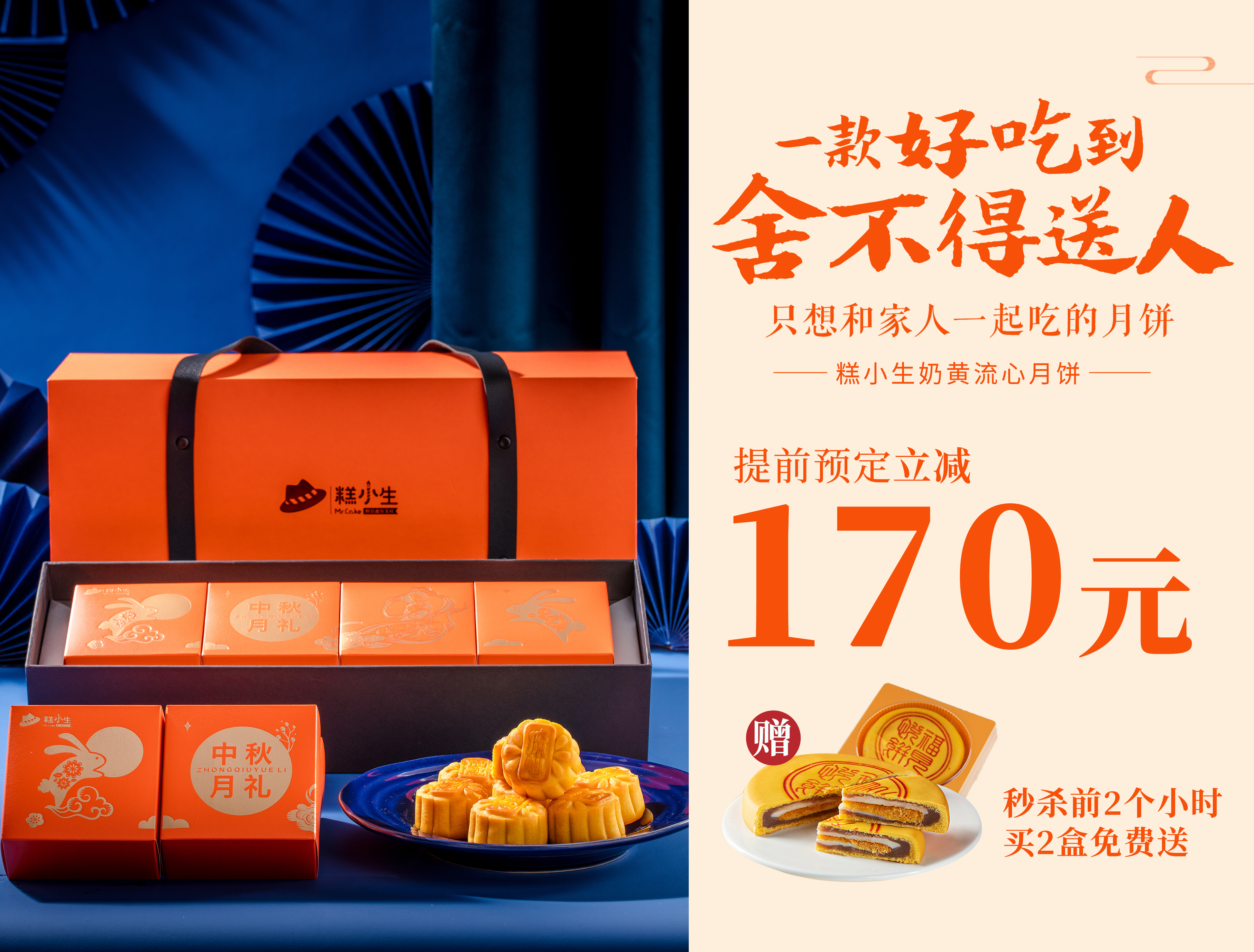 立减170元 - 糕小生奶黄流心月饼|一款好吃到只想和家人一起吃的奶黄流心月饼~ 【前两小时下单送芋泥麻薯肉松大饼1个】