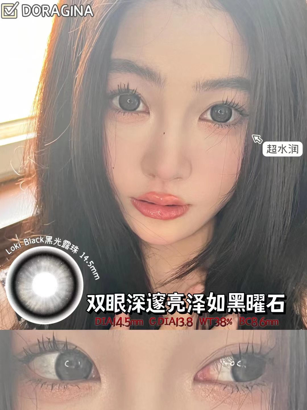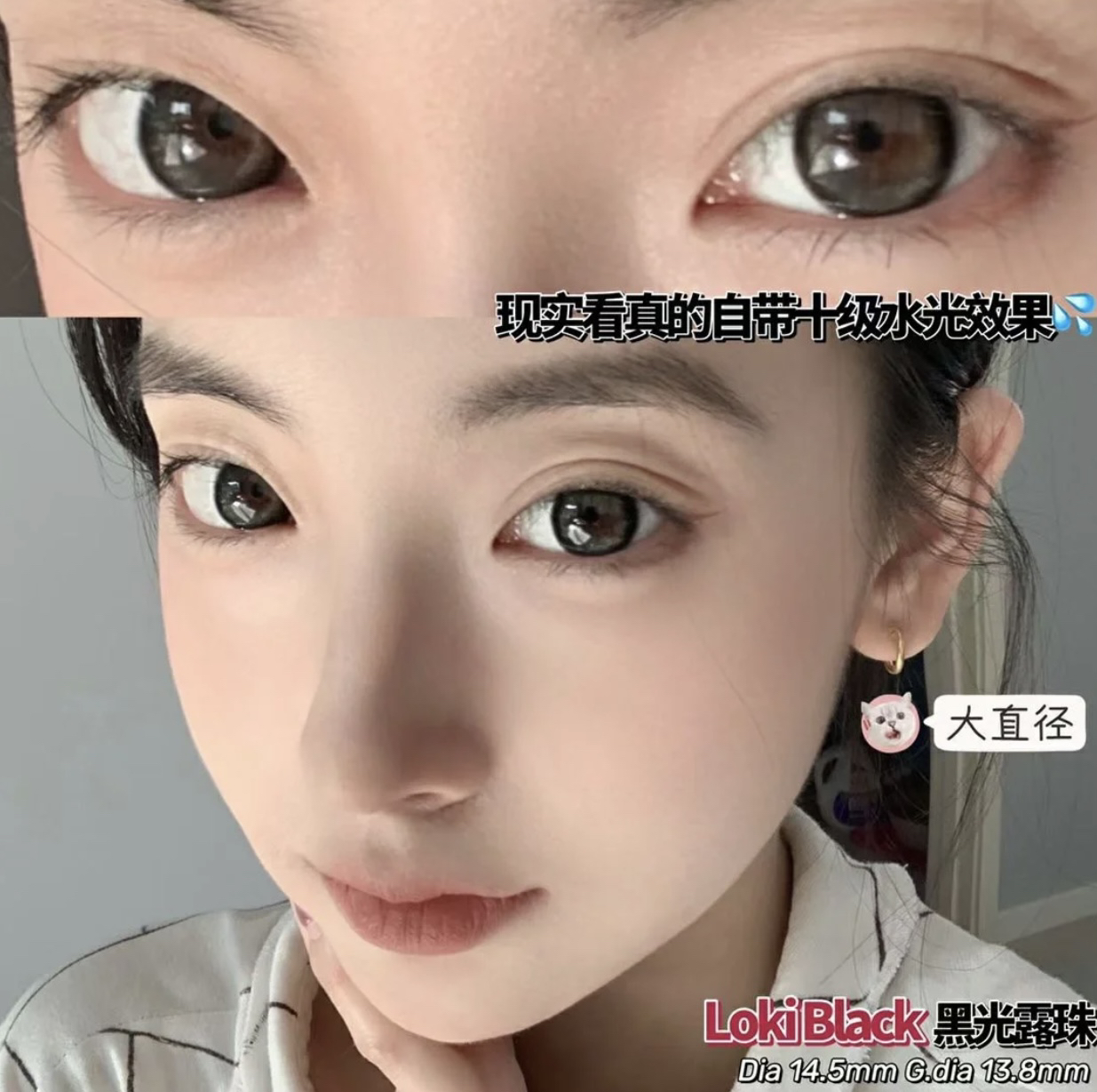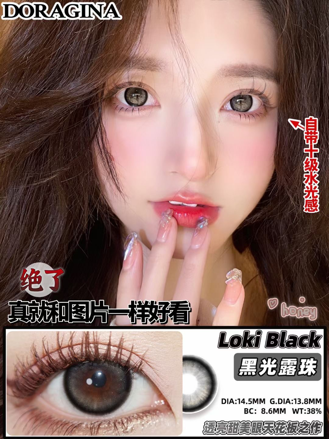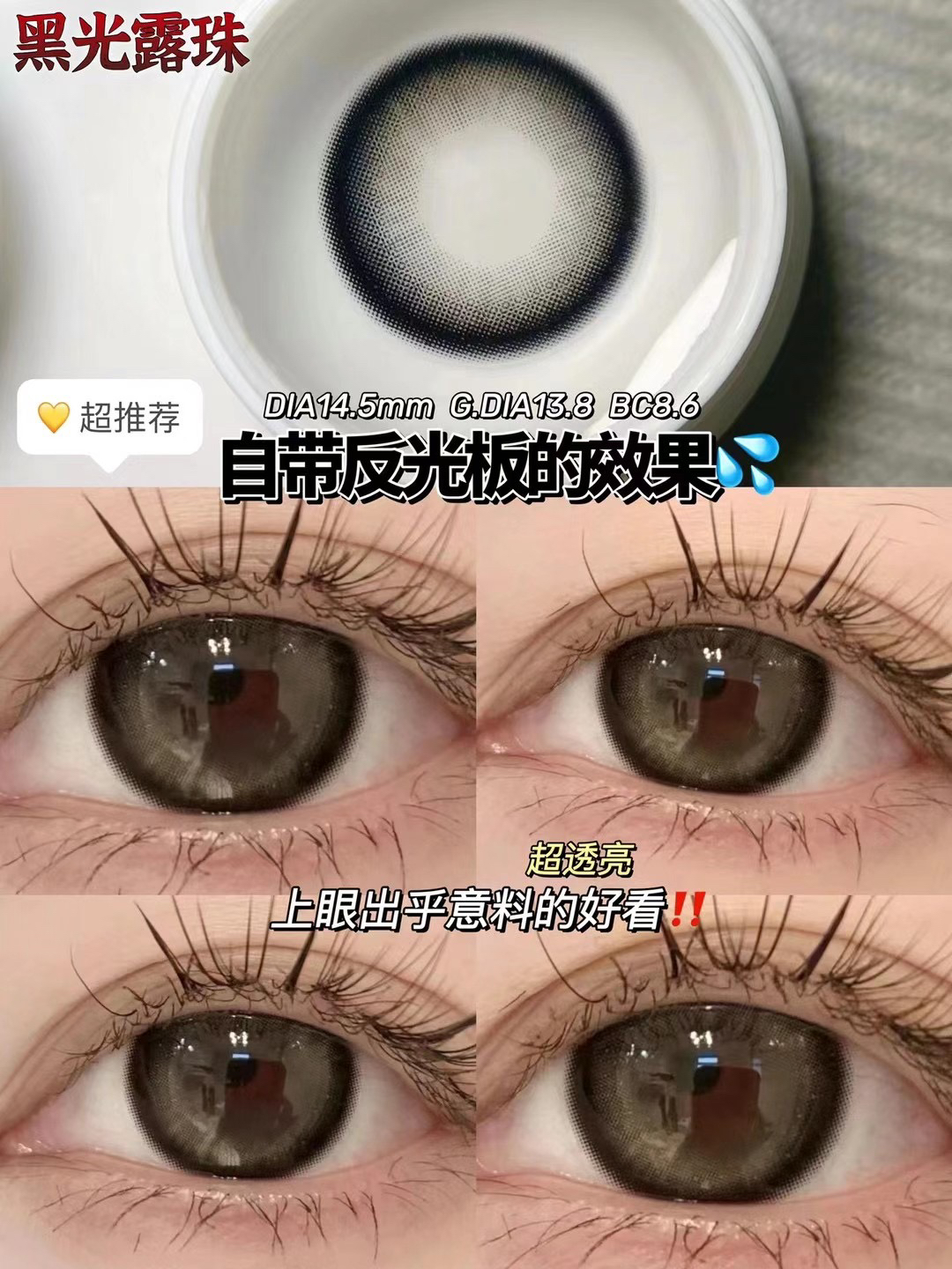 Doragina·年抛 黑光露珠 这镜面质地真的要给一百分 经典日系狗狗眼设计 14.5/备注双眼度数