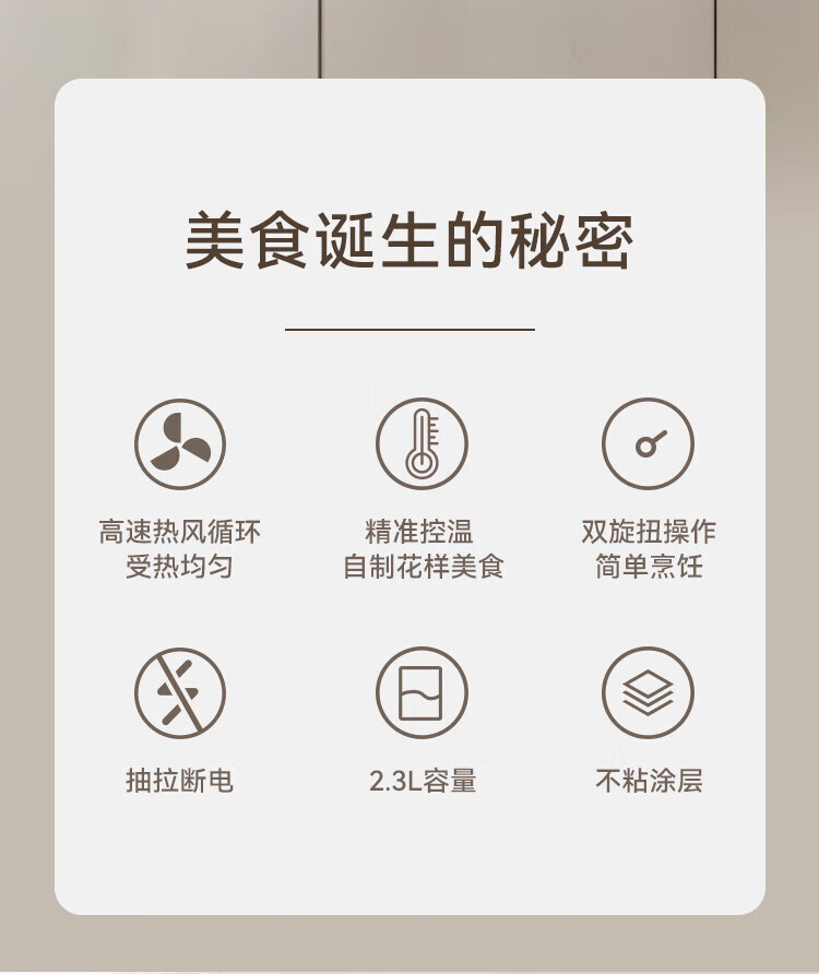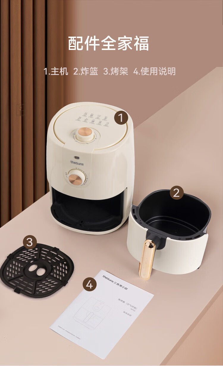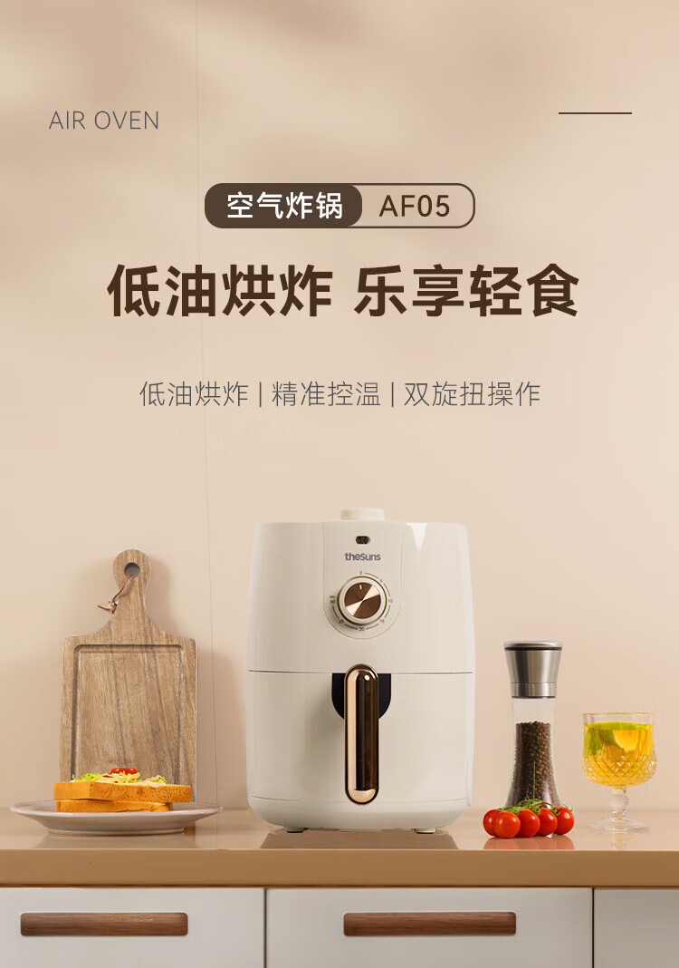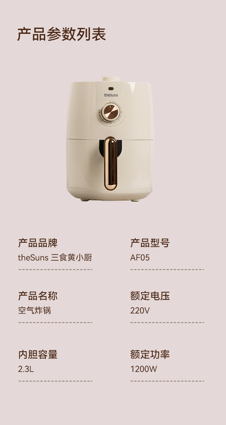 三食黄小厨空气炸锅家用烘焙一机多能无油空炸精准控温2.3L不粘锅(AF05)