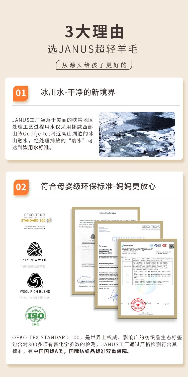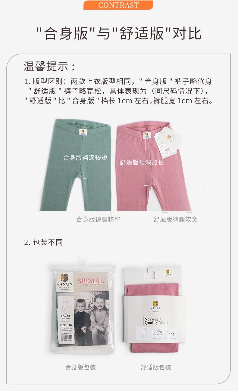 单件56折【90-140码】挪威进口JANUS100%美利奴羊毛纪念款舒适版儿童秋裤 克重200g/㎡