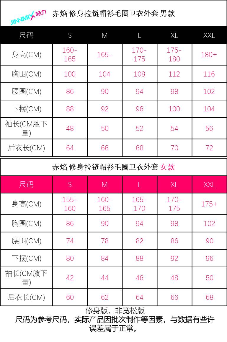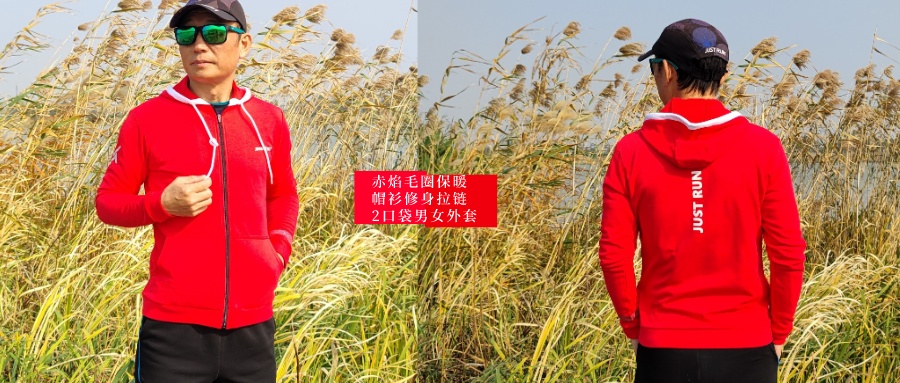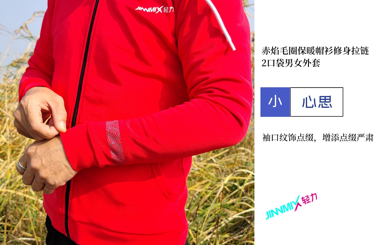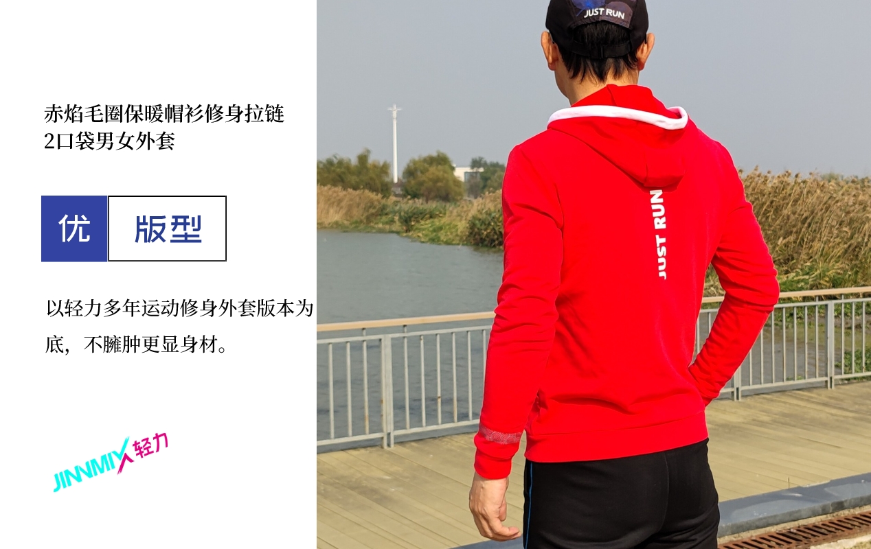 JINNMIX轻力赤焰男女修身毛圈保暖拉链帽衫卫衣运动外套