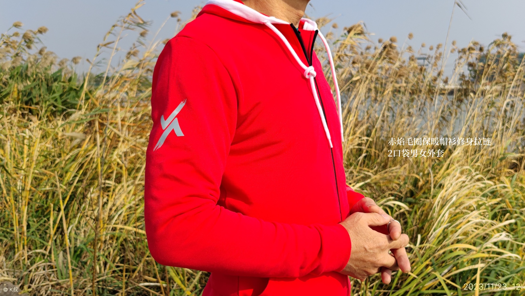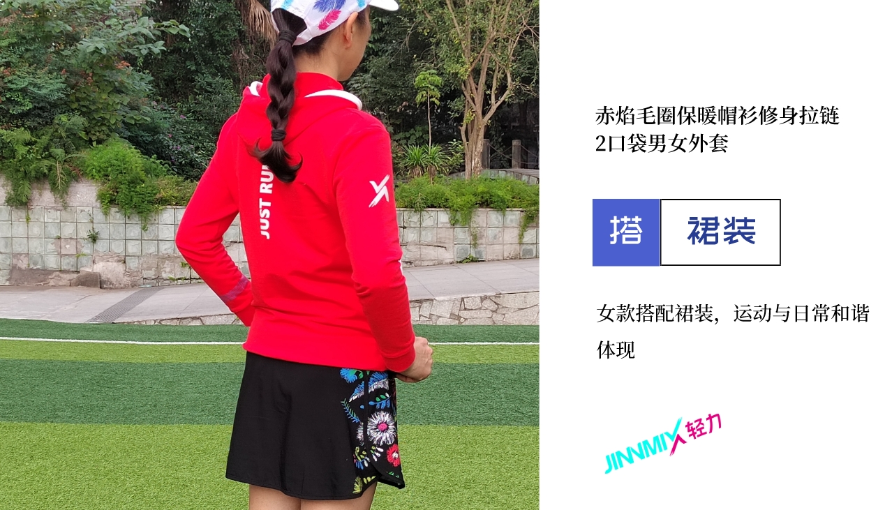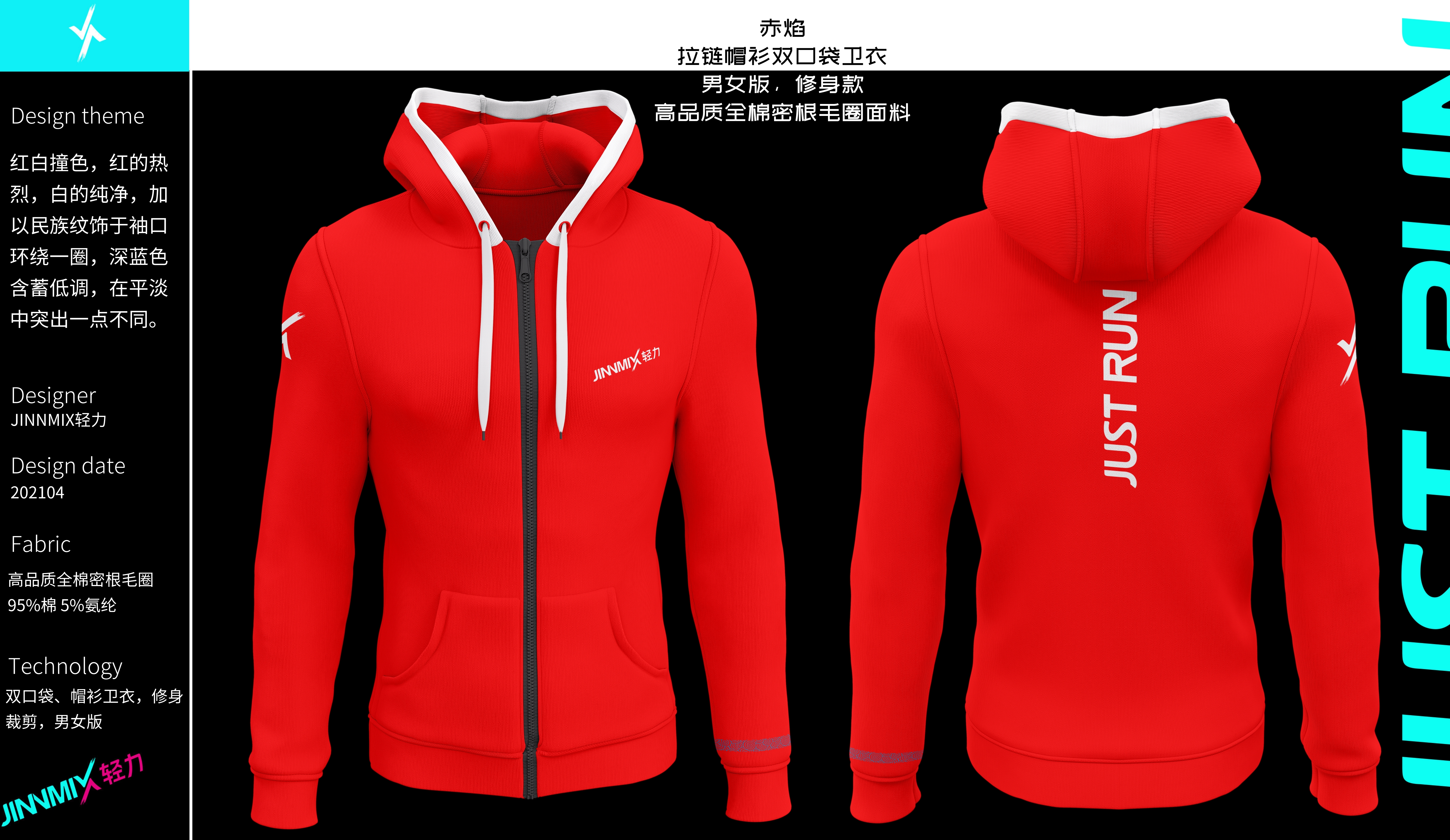 JINNMIX轻力赤焰男女修身毛圈保暖拉链帽衫卫衣运动外套