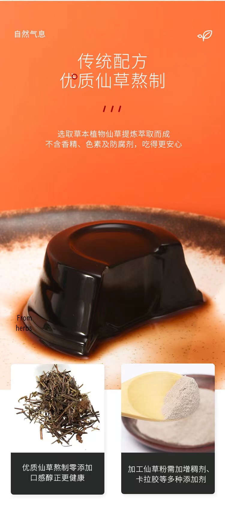 "真材实料,还原初衷“烧仙草都市人群,经常熬夜、不良饮食习惯、工作学习压力大,成为了易“上火”的一族。而所谓药食同源,烧仙草正是消火又美味的不二之选。 仙草是一种草本植物,茎高一米左右,叶子很像薄荷。 仙草虽好,但人总不能像牛羊一样啃着吃。于是,“水煮仙草”而成的凉茶就出现了。将仙草的茎叶晒成干,再下锅熬煮至浓稠状,待其滤汁冷却后就会凝结成果冻状。切成小方块食用,晶莹剔透,清凉可口。这就是烧仙草的雏形。