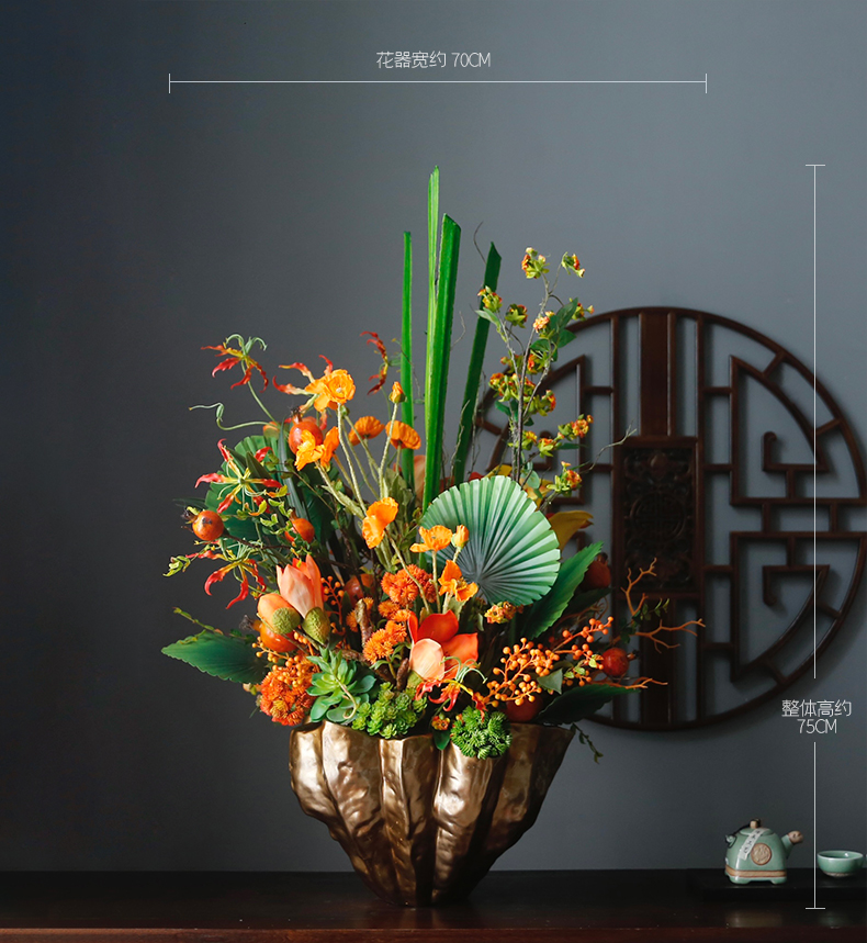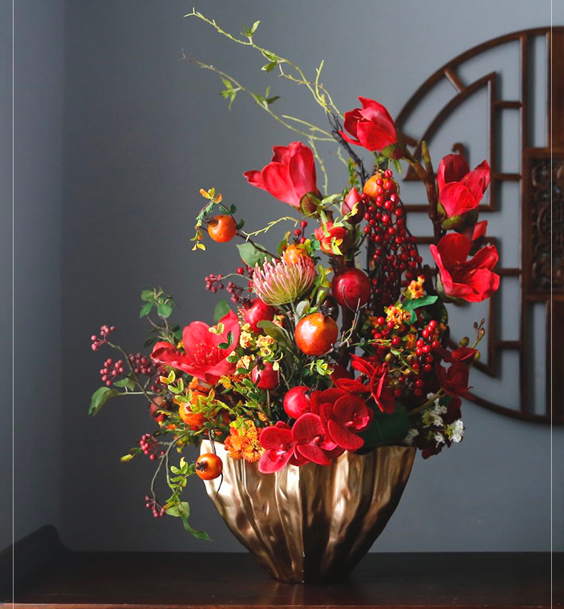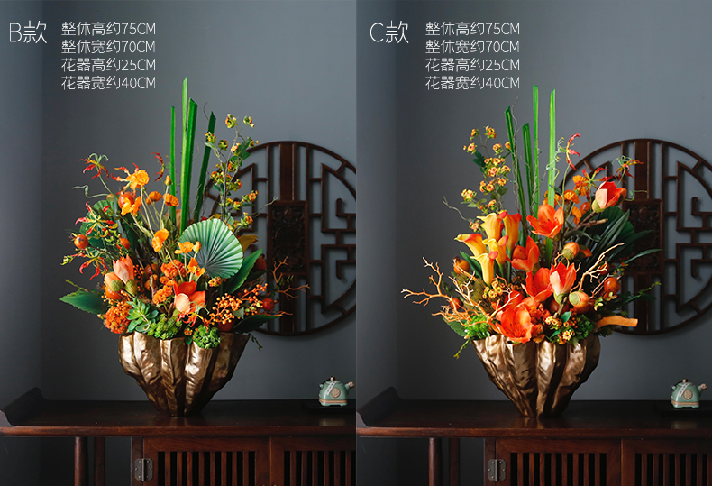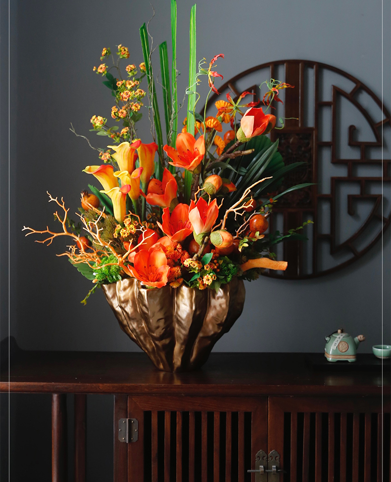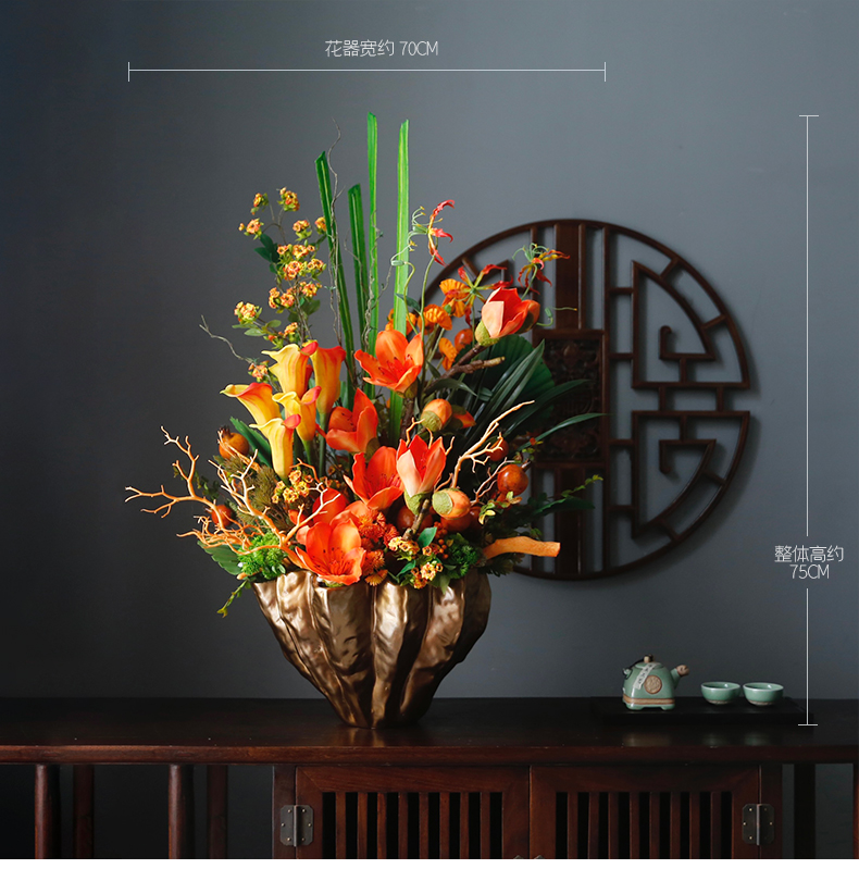 轻奢新中式仿真花假花玄关客厅边几酒店前台餐桌摆设件装饰花