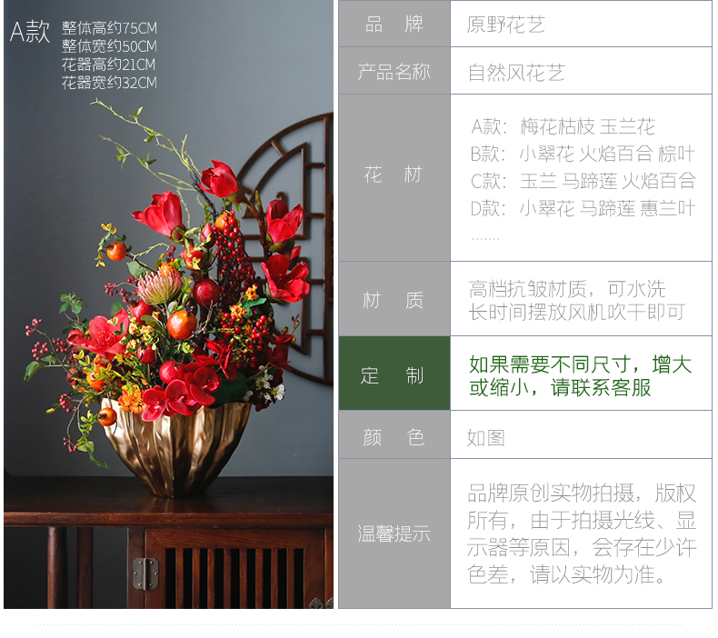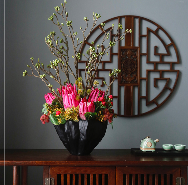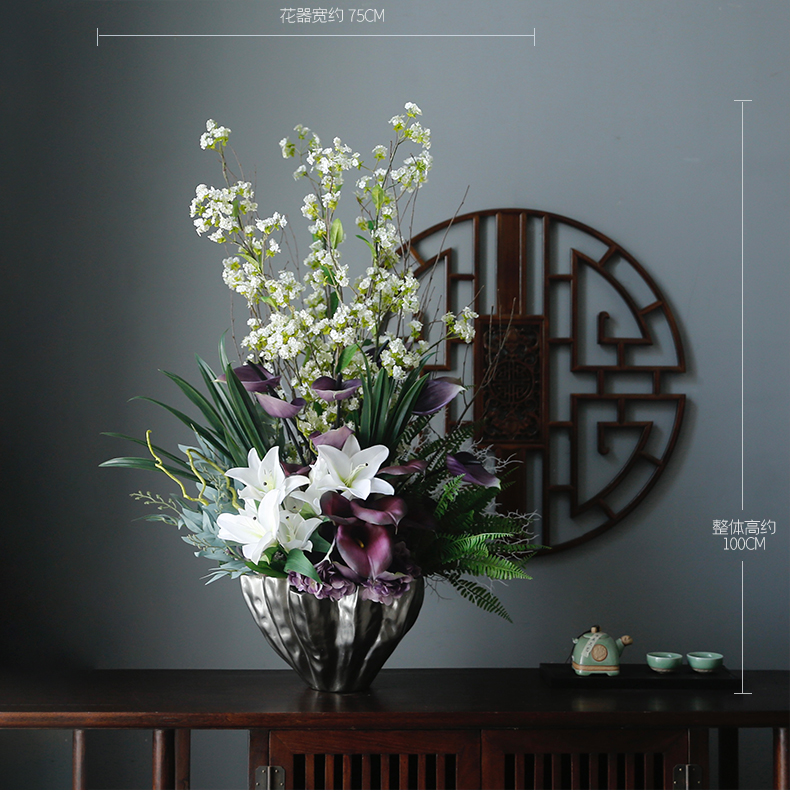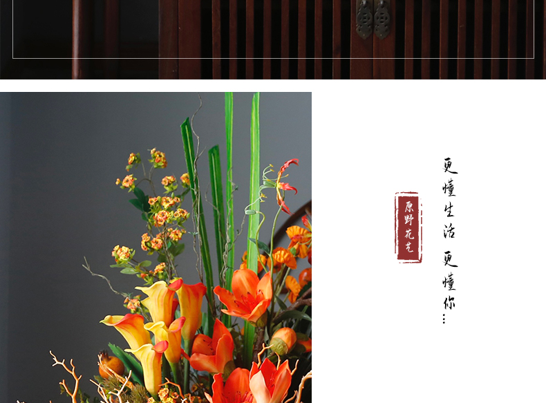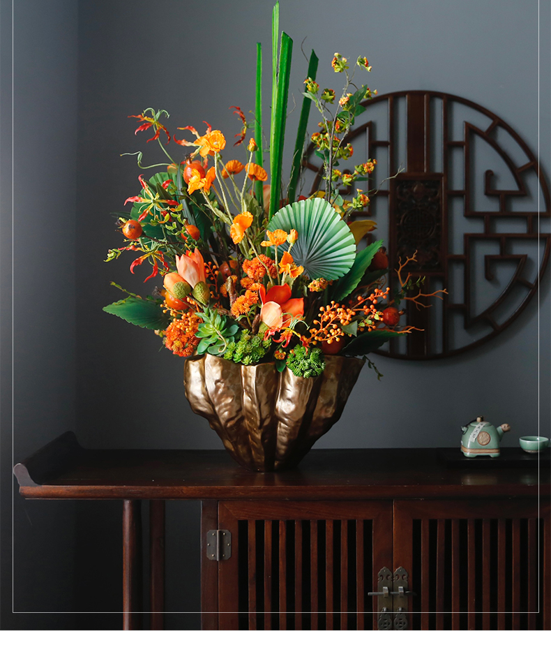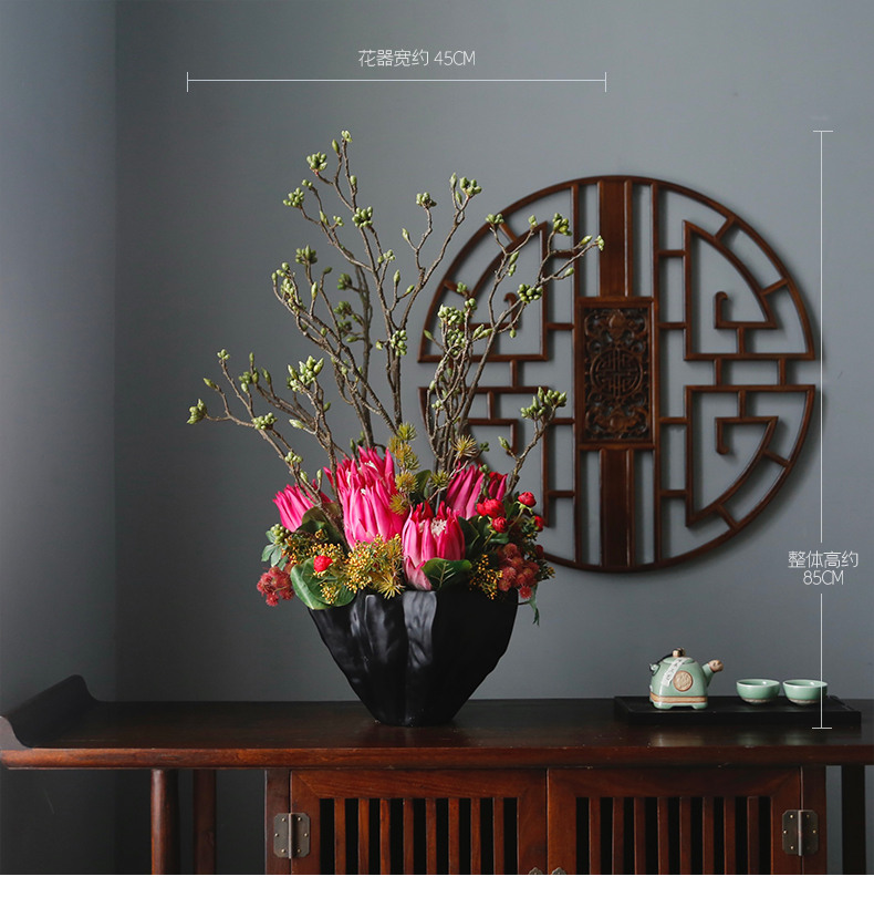 轻奢新中式仿真花假花玄关客厅边几酒店前台餐桌摆设件装饰花