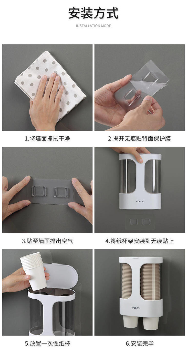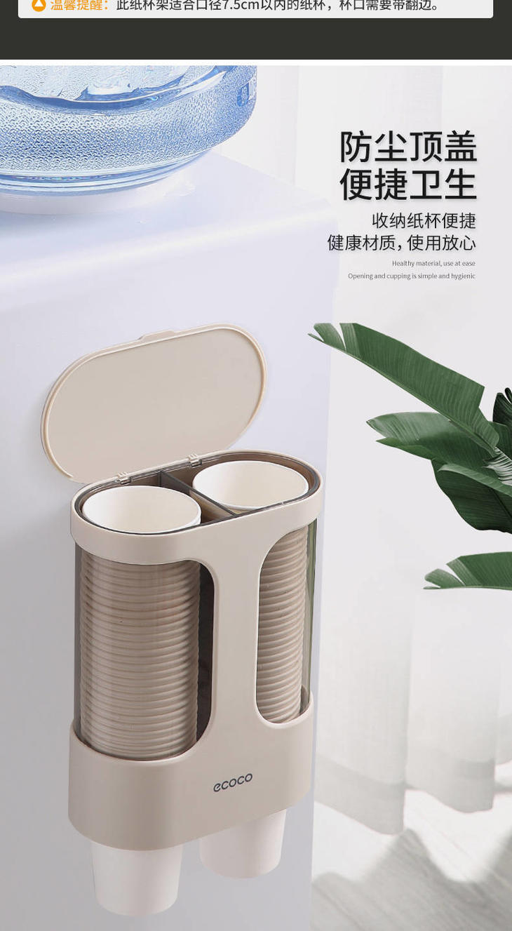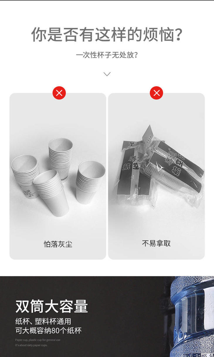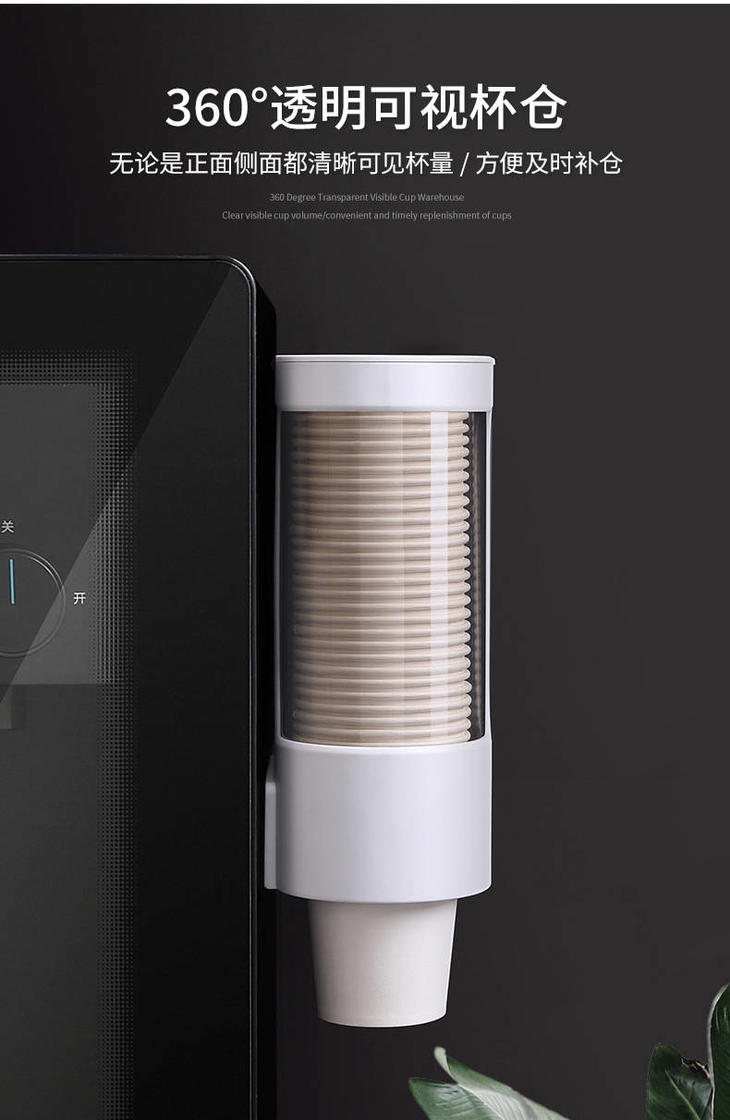 饮水机一次性水杯架塑料杯纸杯架免钉无痕贴透明可视双筒取杯器架