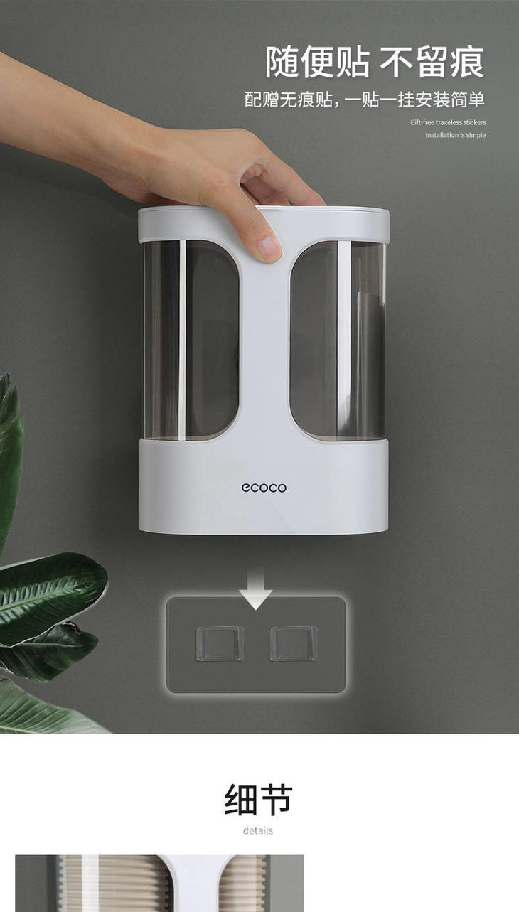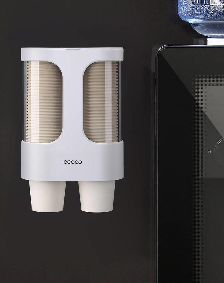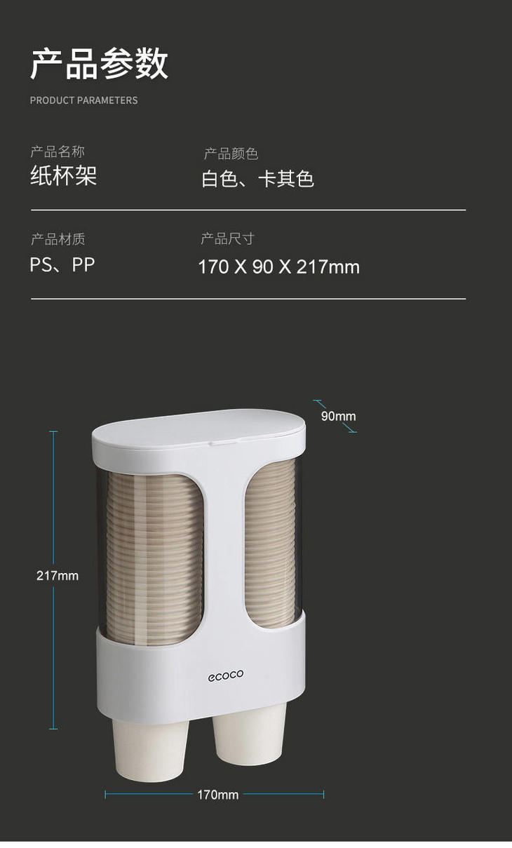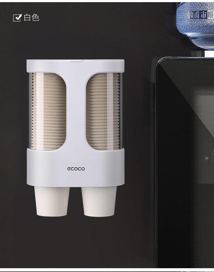 饮水机一次性水杯架塑料杯纸杯架免钉无痕贴透明可视双筒取杯器架