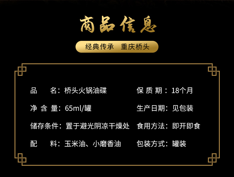 重庆桥头火锅油蝶65ml/瓶 罐装蘸料家用调和油香油