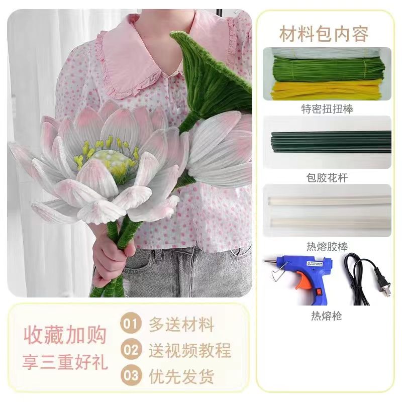 好运连连超大荷花手工diy材料包国风莲花扭扭棒仿真花花束礼物