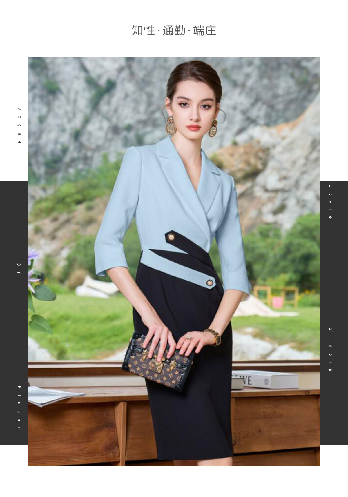 AD秋季2023新款接拼撞色连衣裙职业装气质女神范正装连身裙工作服