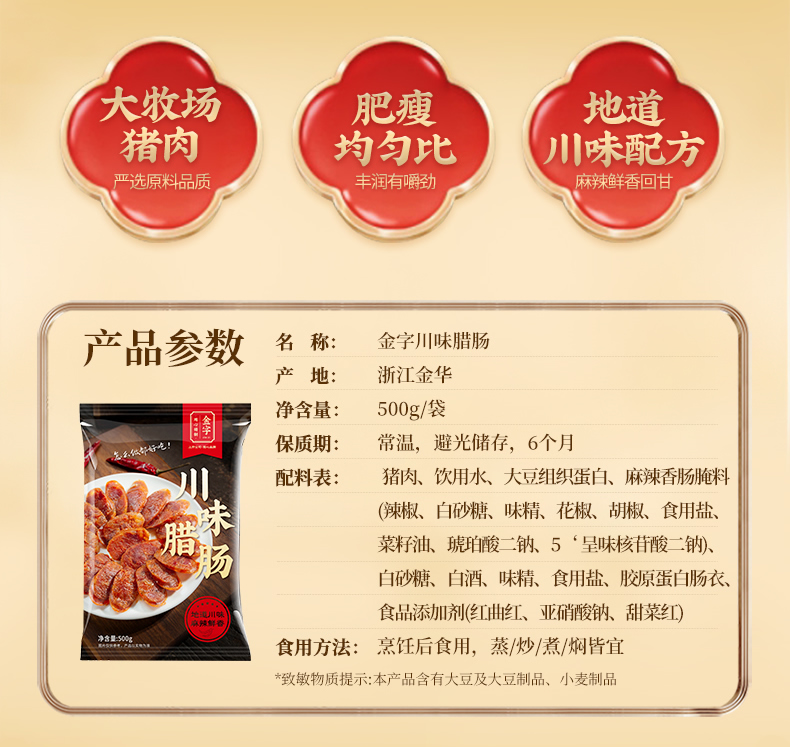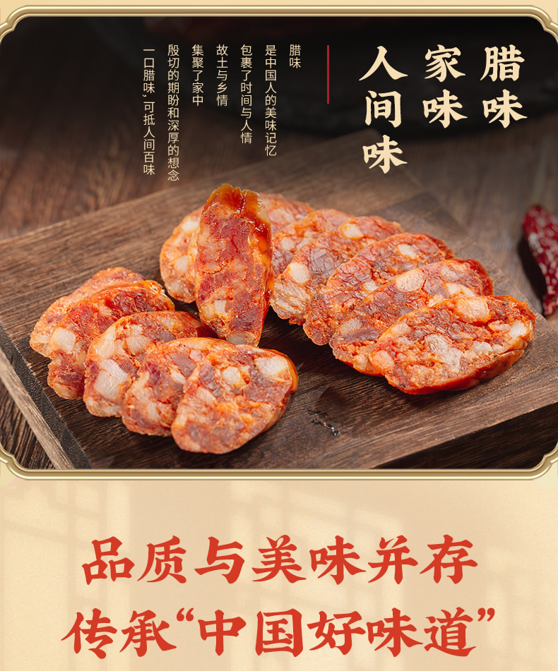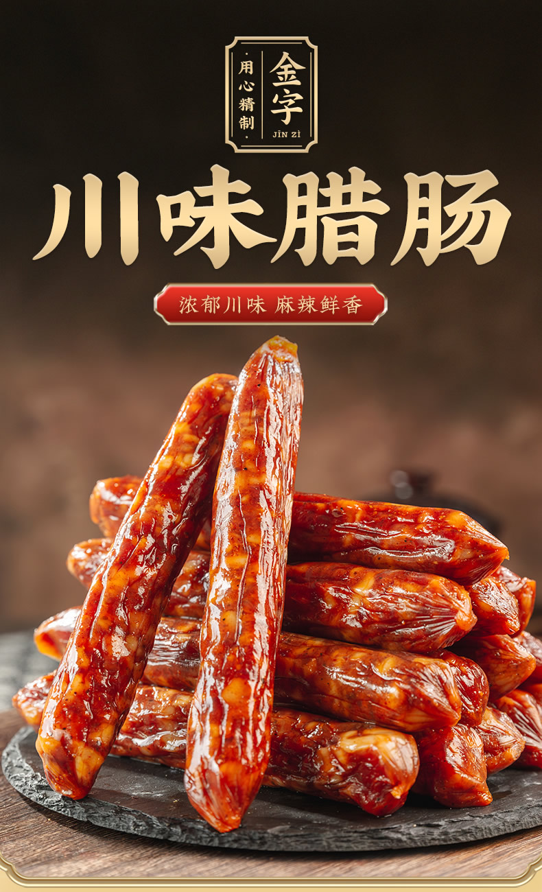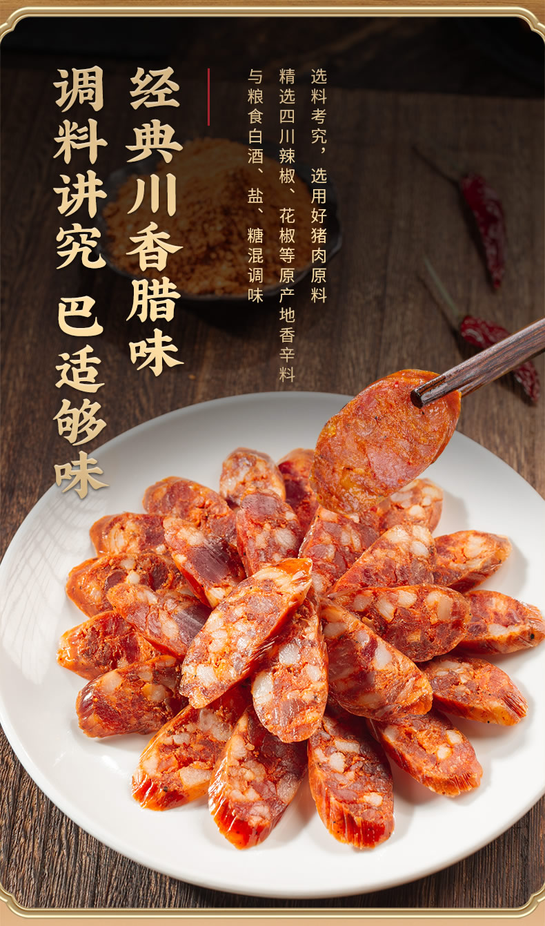 金字川味腊肠500克自制烟熏味四川麻辣香肠辣肠特产腊味年货7分瘦