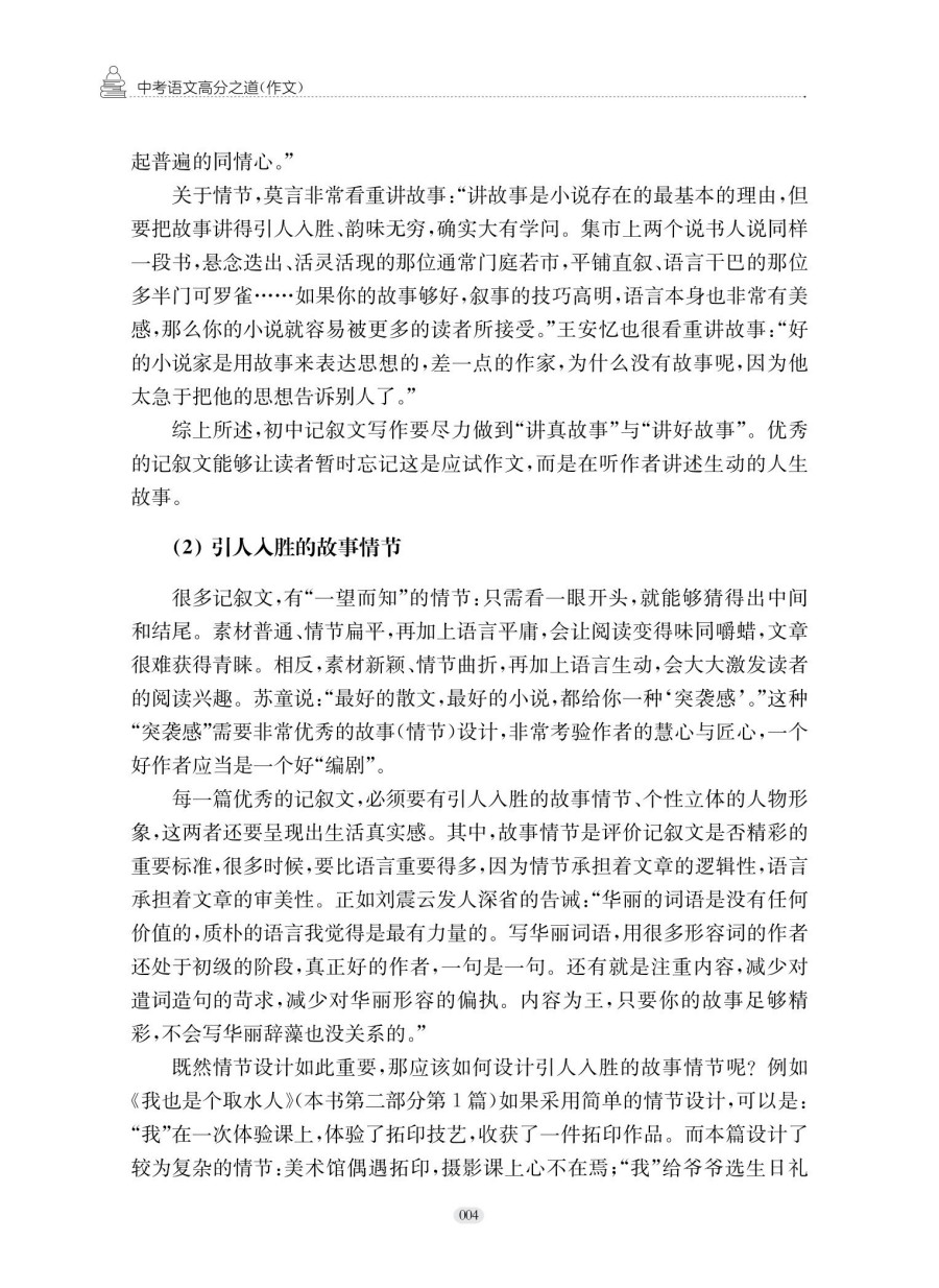 本书分为写作技巧和下水作文两个部分,共有28篇写作技巧、60篇中考和模考真题下水作文、34幅原创插画。第一部分聚焦写作技巧,先明晰写作要求,接着指导学生严选素材,深入讲解如何建立情节模型,还教授表达方式的恰当运用及审题点题技巧。第二部分精选60篇下水作文,含各类典型主题,每篇作文都经过精心构思和打磨,具有很强的示范性和借鉴意义。本书适合初中学生,尤其是初二、初三学生备考使用。