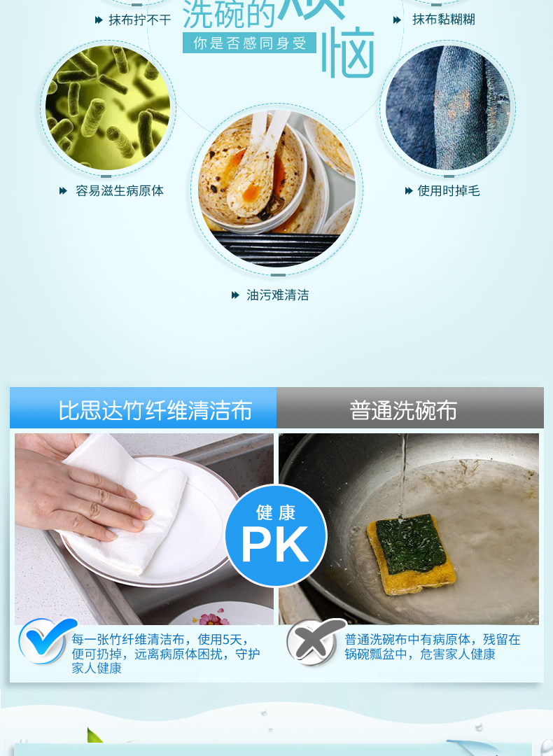 比思达竹纤维万洁布不易沾油一次性多用途抹布加厚清洁布不易掉毛