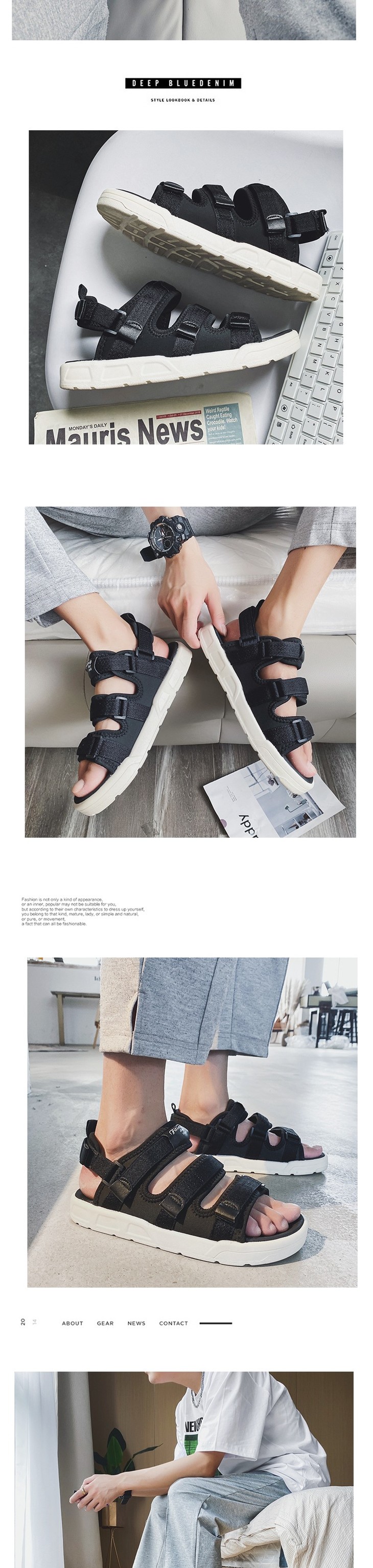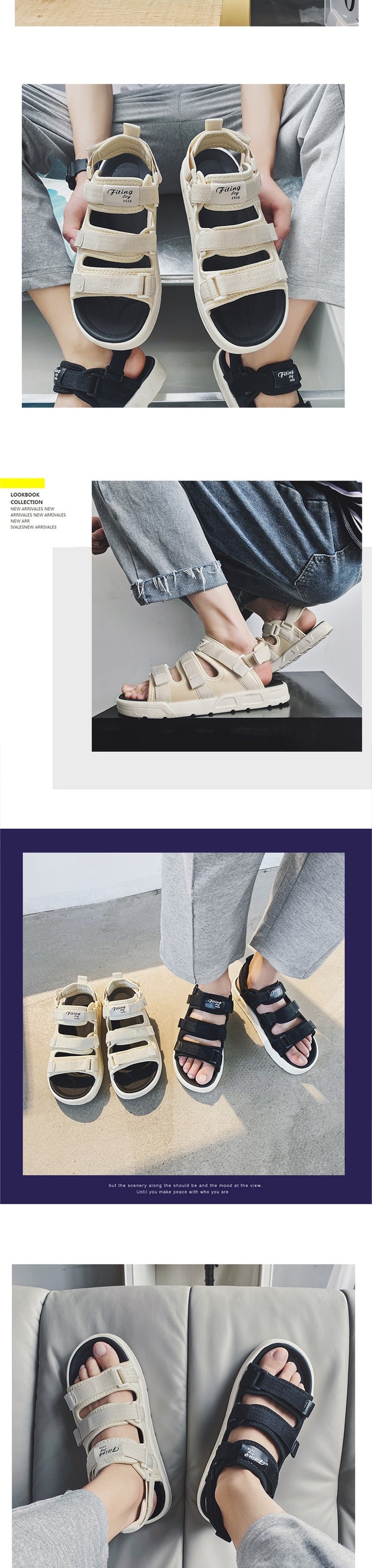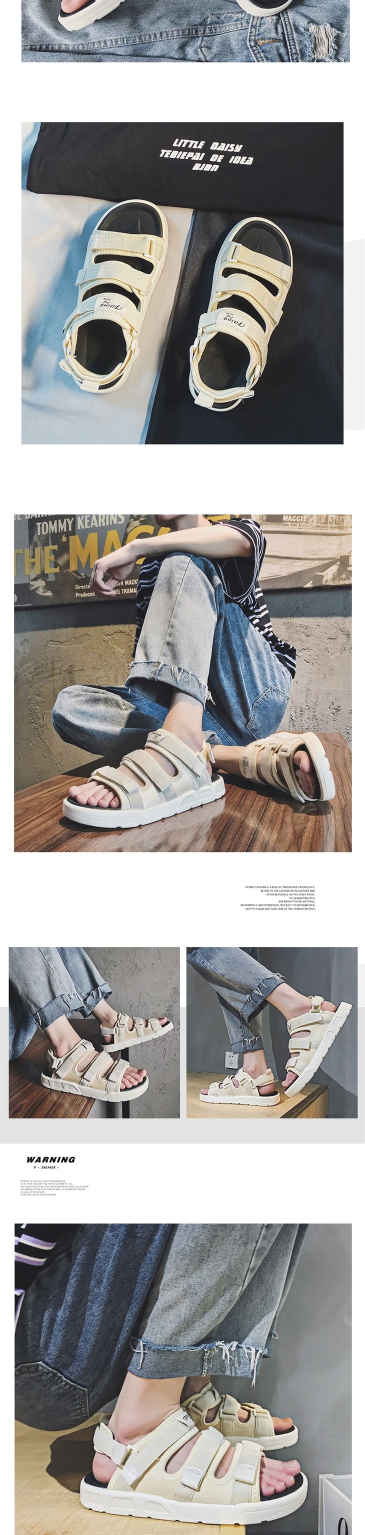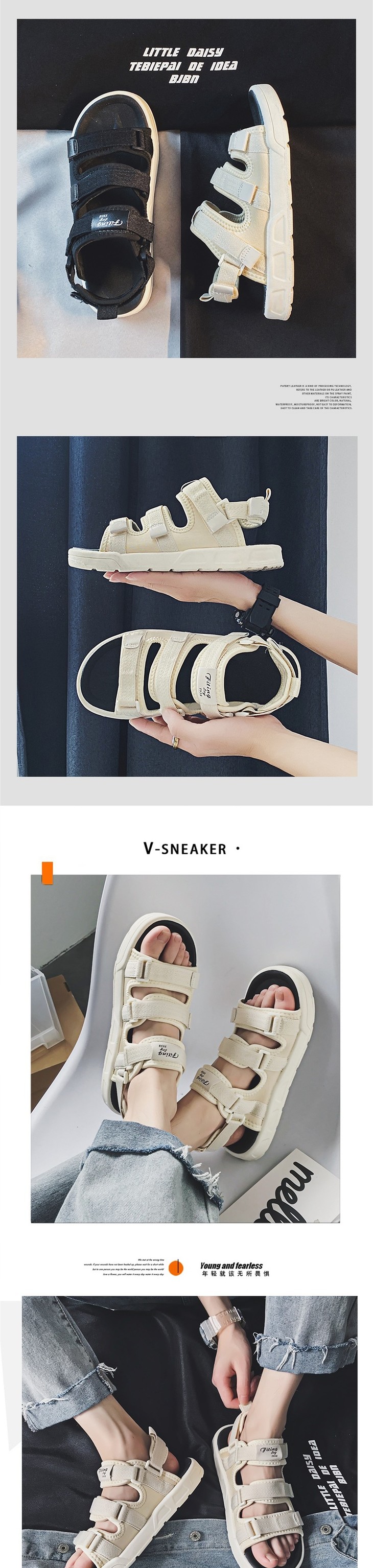 【服饰鞋包】穿名堂情侣凉拖鞋软底魔术贴休闲沙滩凉拖鞋