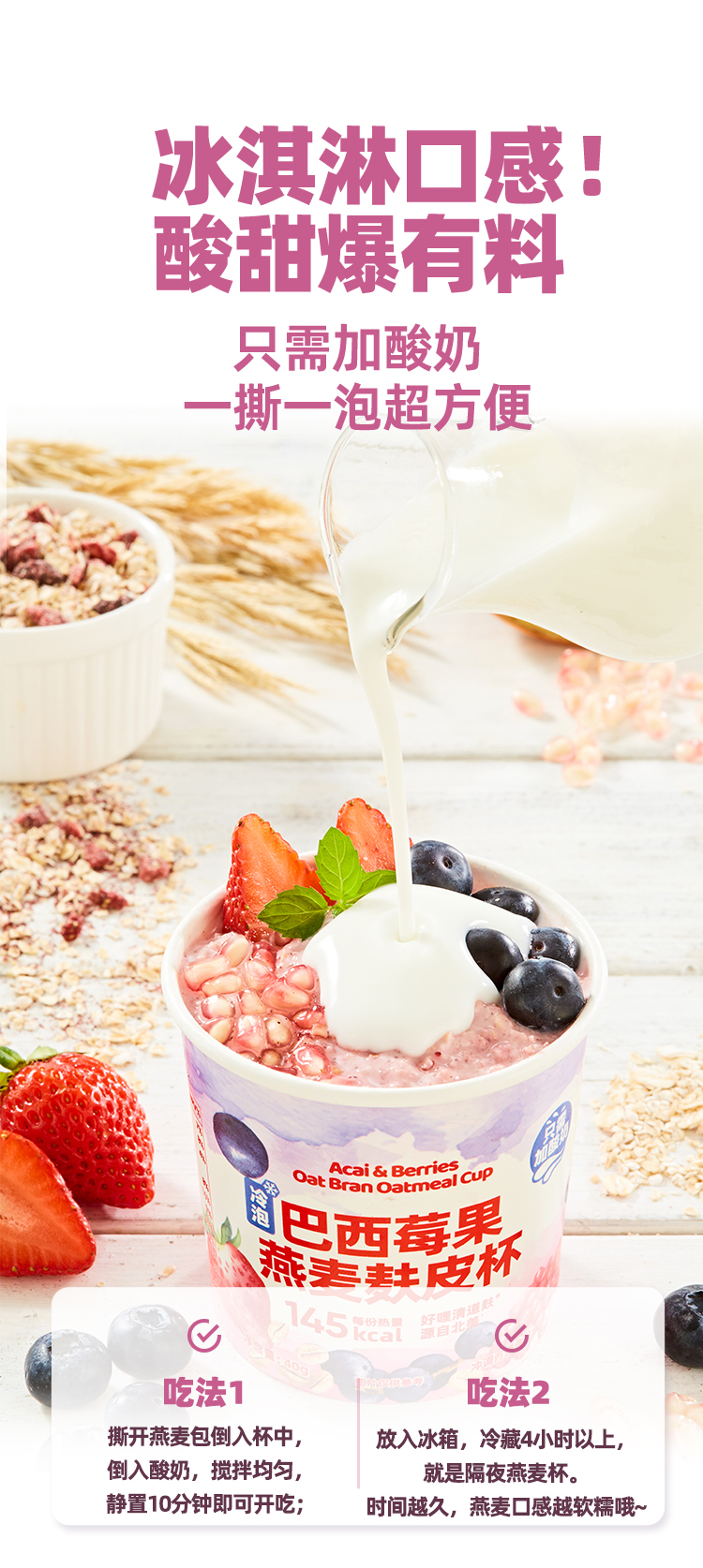 【新品】好哩!巴西莓果燕麦麸皮独立便携杯40g