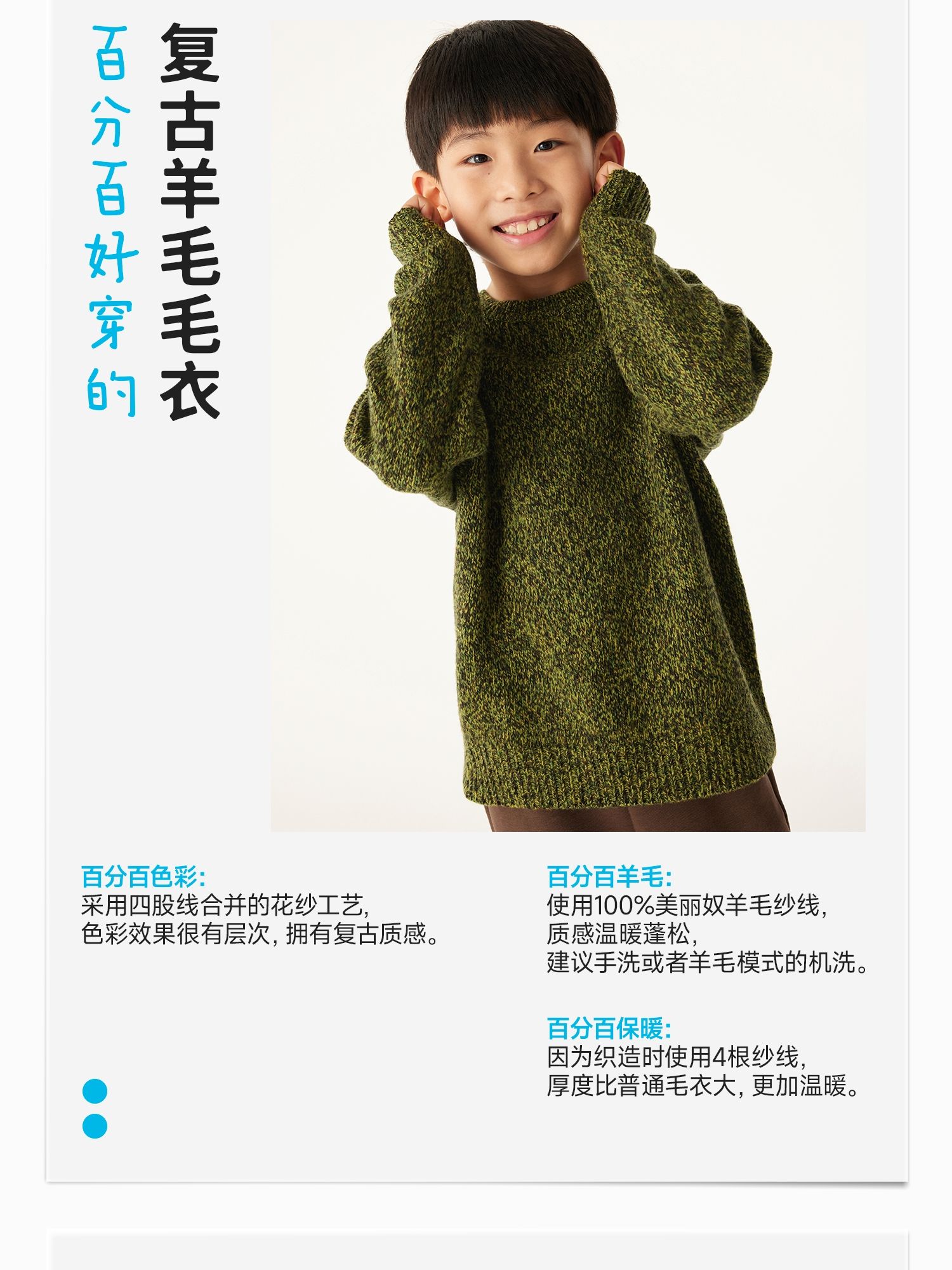 【花纱羊毛】allblu幼岚儿童毛衣女童男童24冬季新款圆领复古上衣