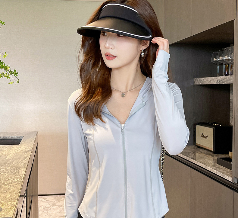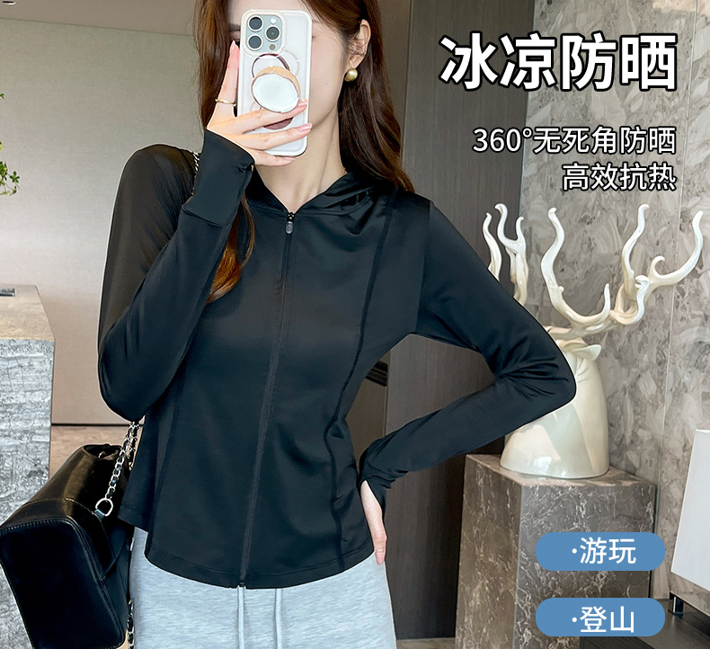 修身防晒衣女衫夏季防紫外线薄款原纱冰丝户外瑜伽运动外套防晒服