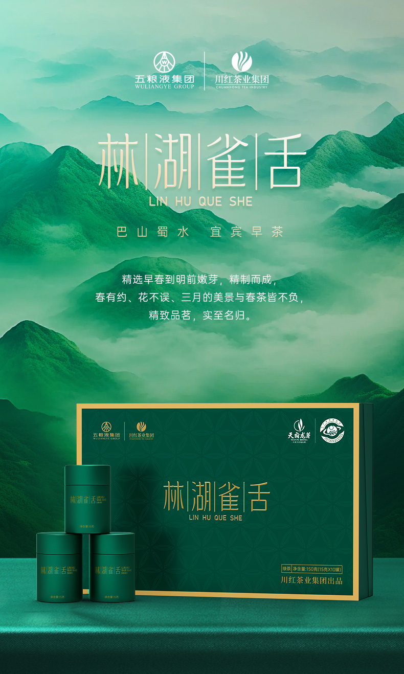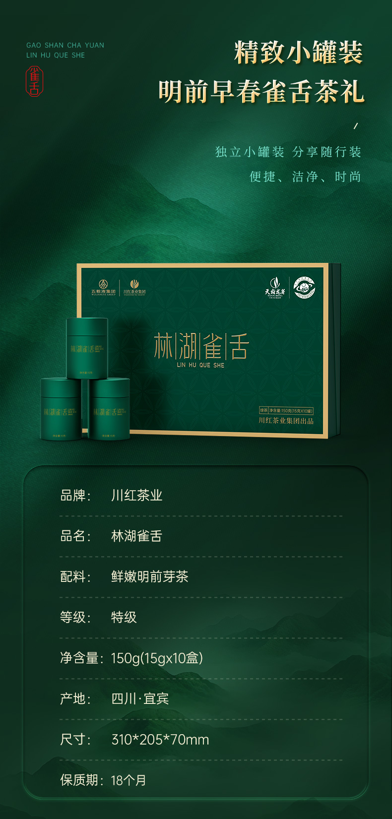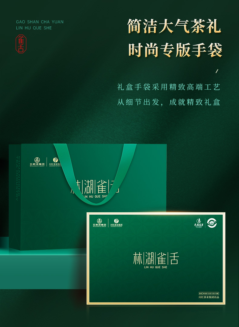 五粮液&川红集团 2025川红茶叶林湖雀舌明前特级春茶礼盒160g 嫩芽绿茶