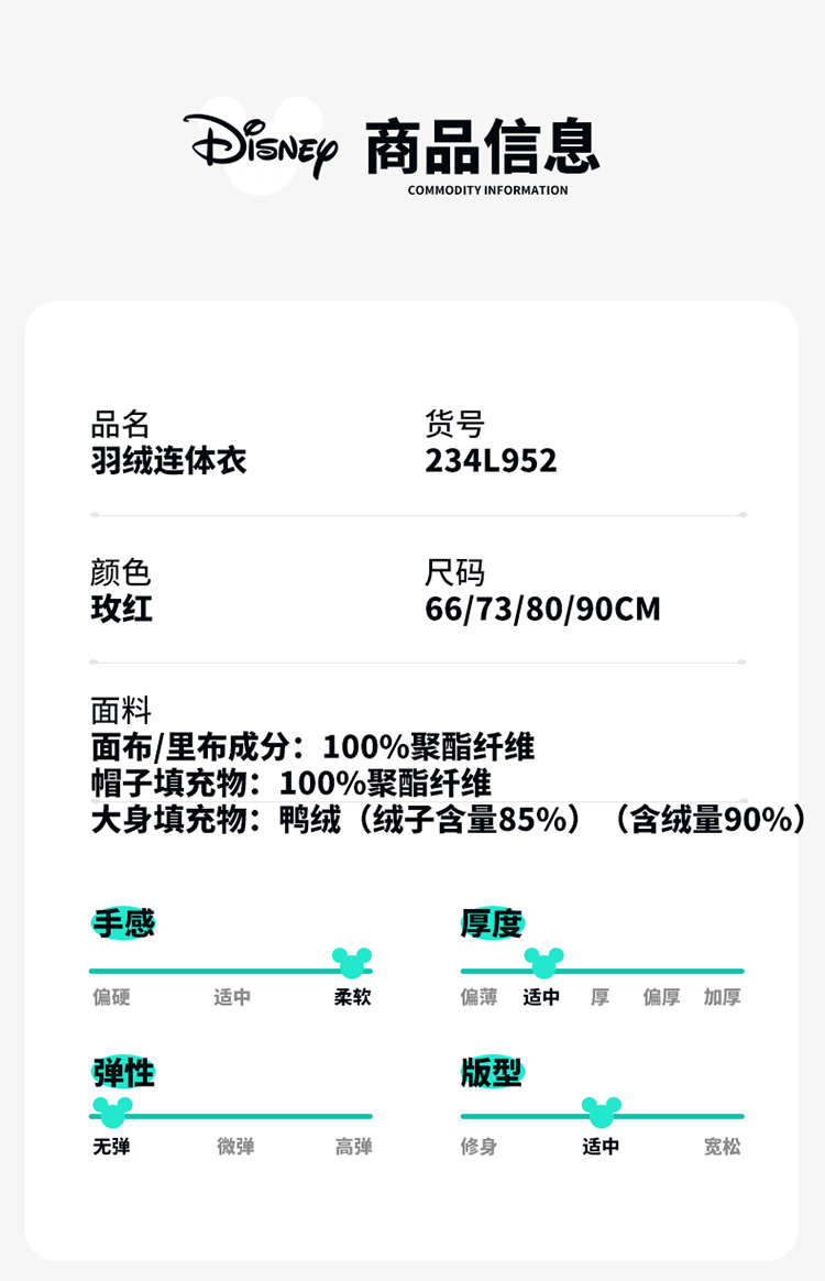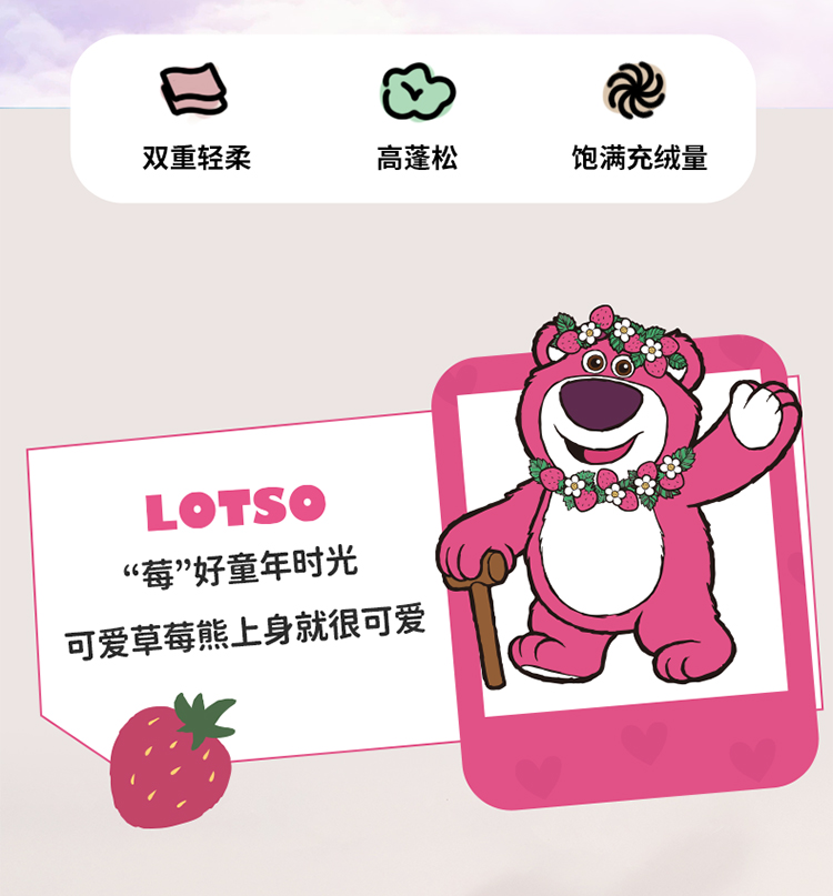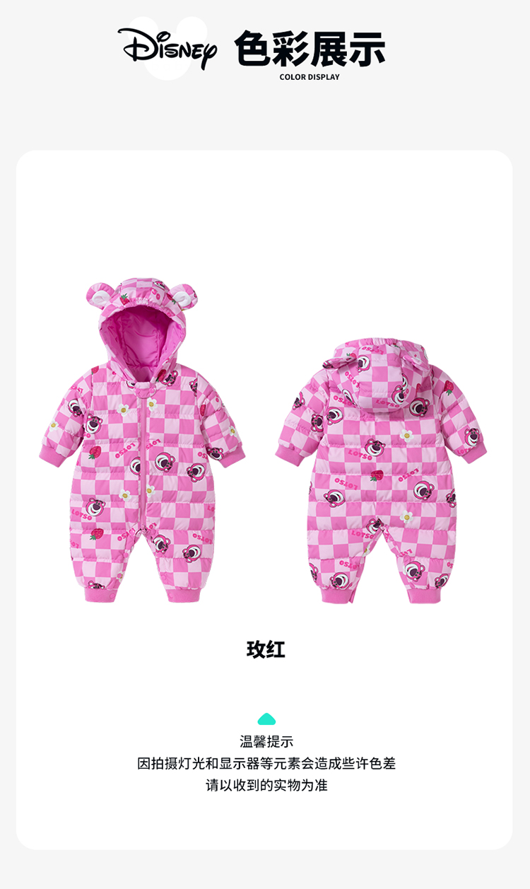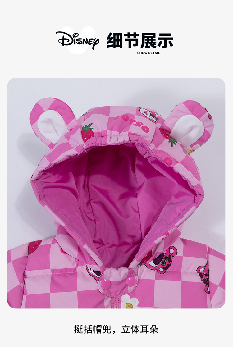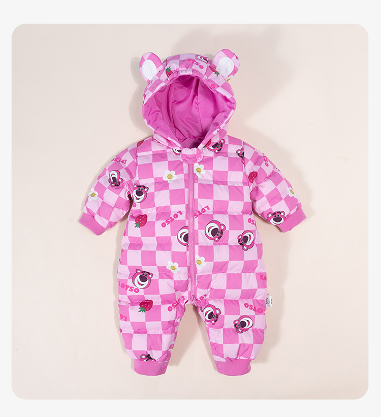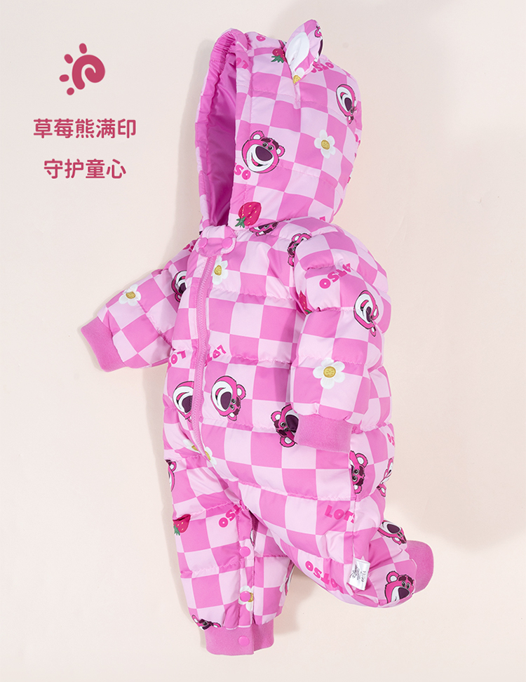 迪士尼童装婴幼儿保暖舒适羽绒连体衣冬季新款可爱草莓熊哈衣234L952