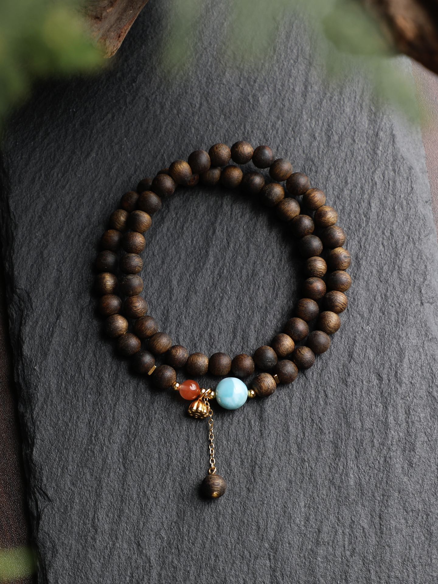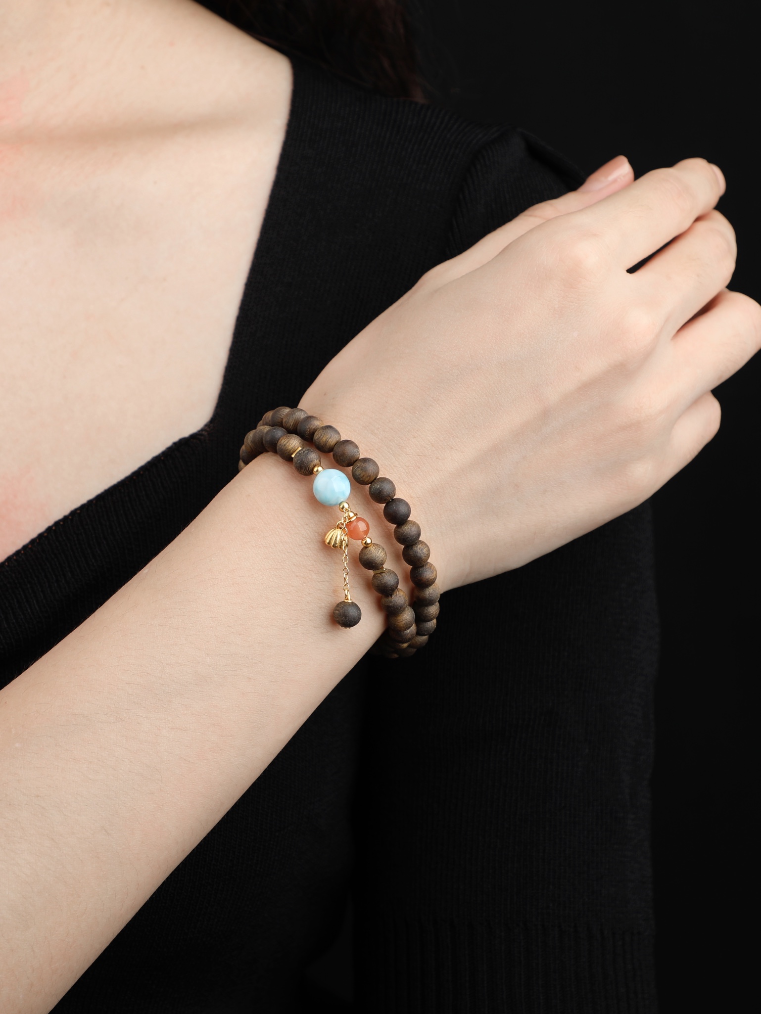 海蓝宝奇楠双圈手链天然沉香创意首饰