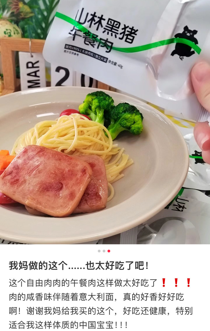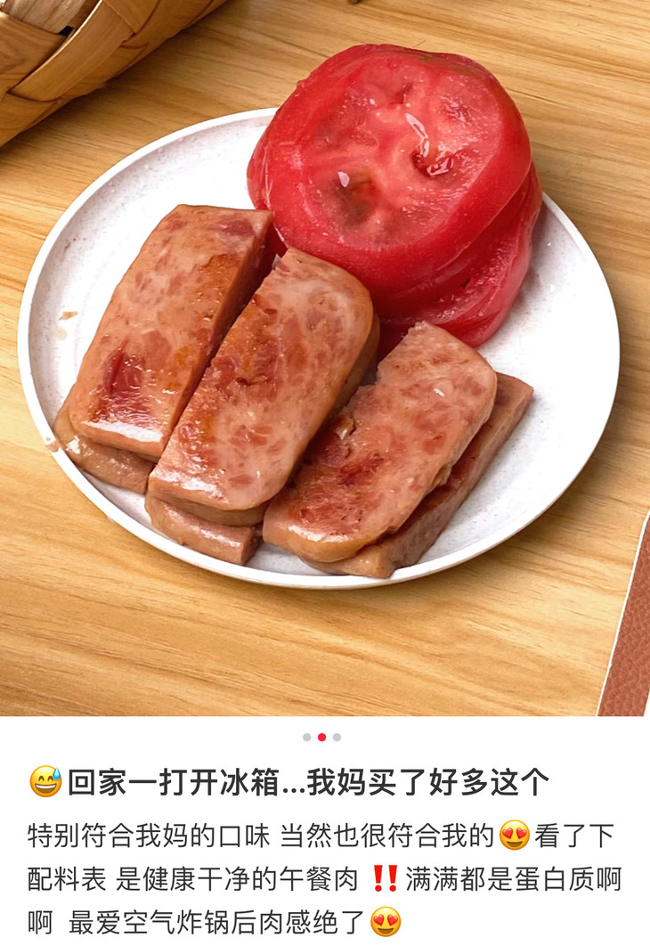 午餐肉其实已经有上猪掌门了,我超爱!这款是自由肉肉的山林黑猪午餐肉,配料还是不错的,但我个人觉得口味上赶不上猪掌门,但比较好的一点是,单片装,不会一大盒开了吃不完浪费,尤其是减脂人,馋了最多吃个两片!