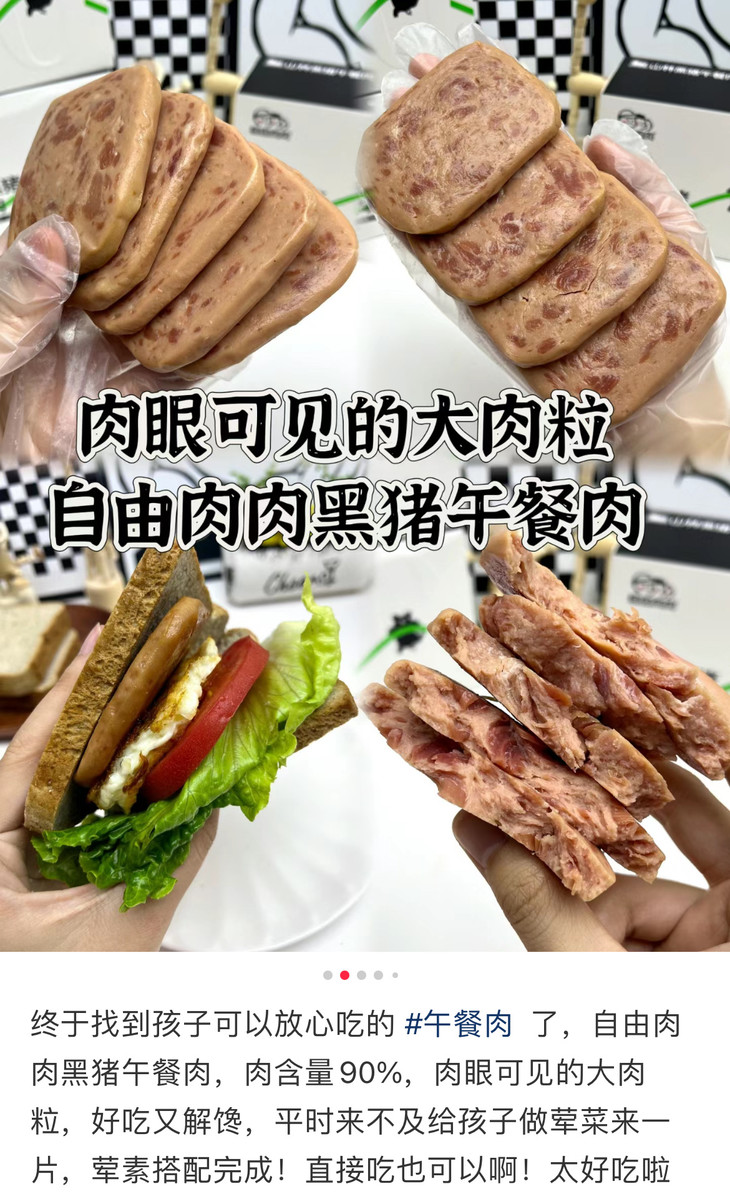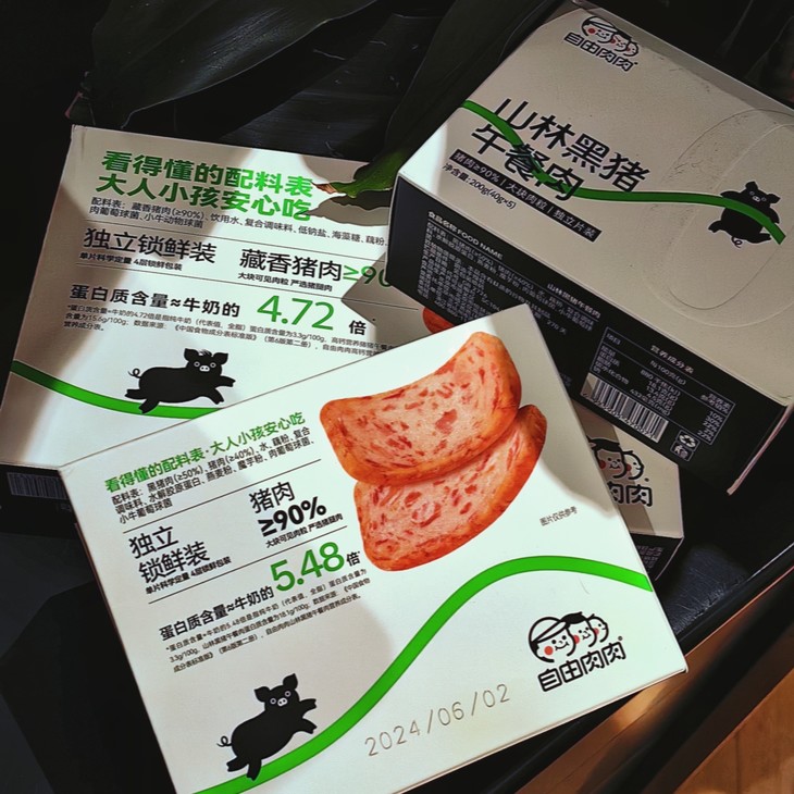 在制作工艺上,自由肉肉山林黑猪午餐肉摒弃了传统午餐肉中常见的添加剂和防腐剂,采用米其林大厨推崇的真空低温慢煮技术,不仅保留了猪肉的原始风味和营养成分,还使得午餐肉肉质更加紧实、口感更加细腻。同时,通过短保270天的设计,减少对化学防腐剂的依赖,吃得更安心健康。此外,还通过了27项严苛的安全检测,确保每一片午餐肉都是对品质的承诺,孕妈、宝贝、三高老人都能安心享用。