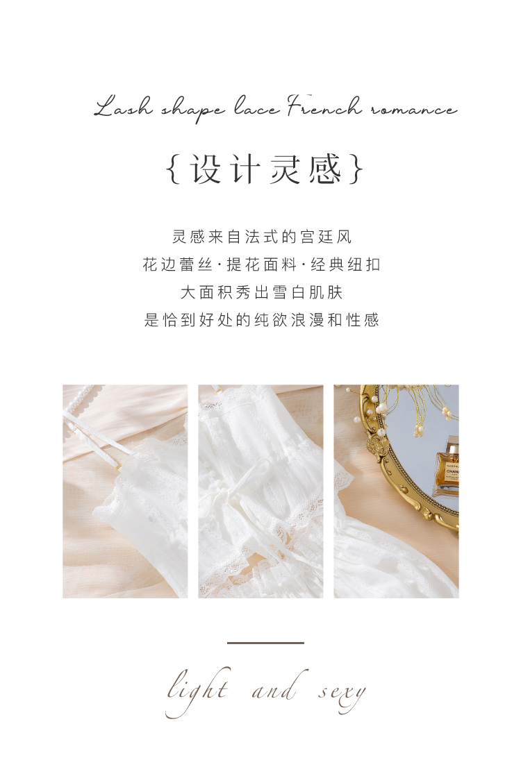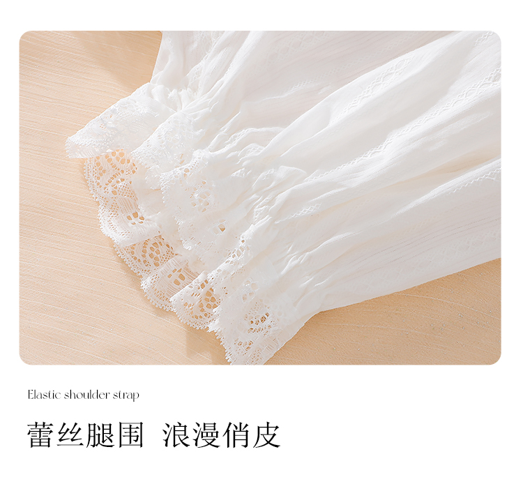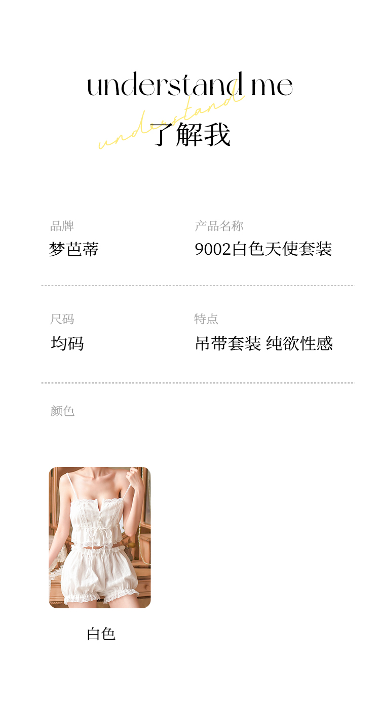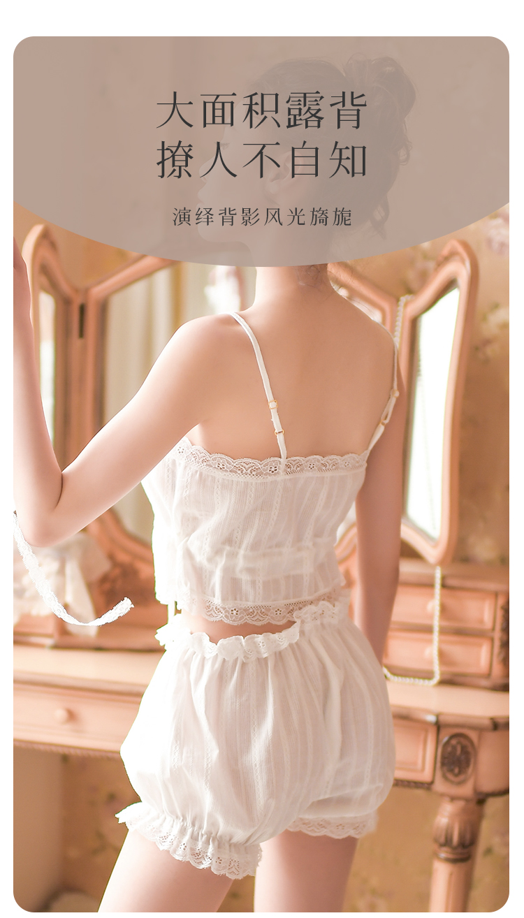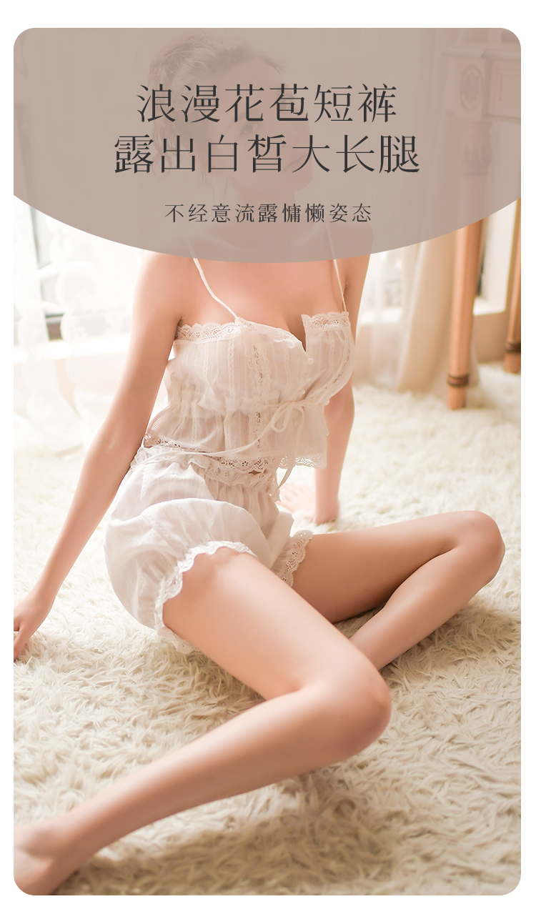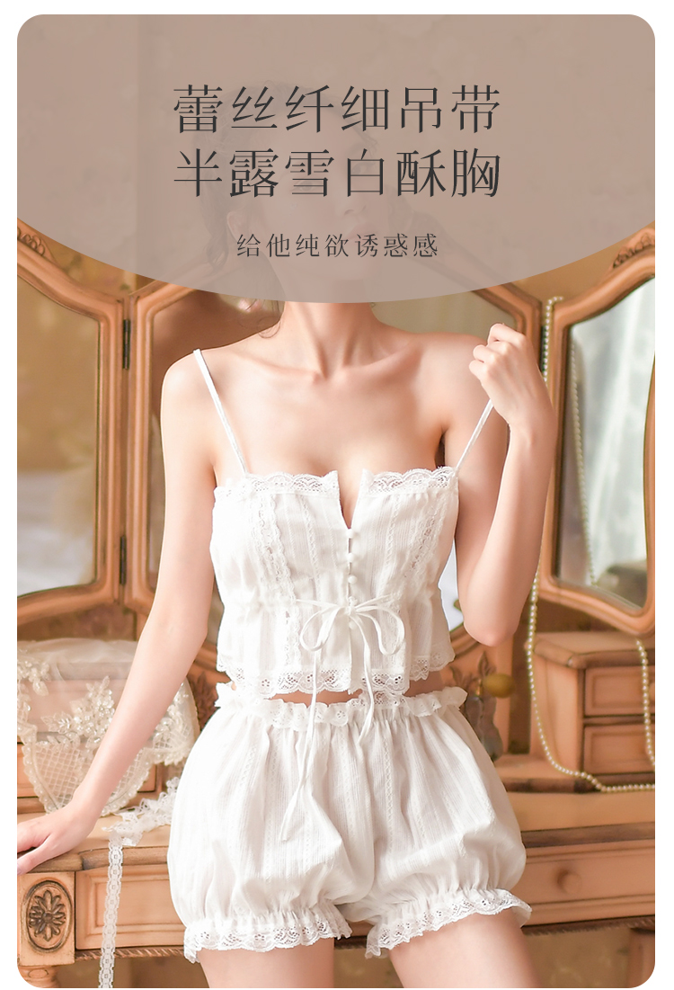 【100%棉 纯欲套装】法式浪漫提花蕾丝吊带花苞短裤睡衣套装9002白色天使套装