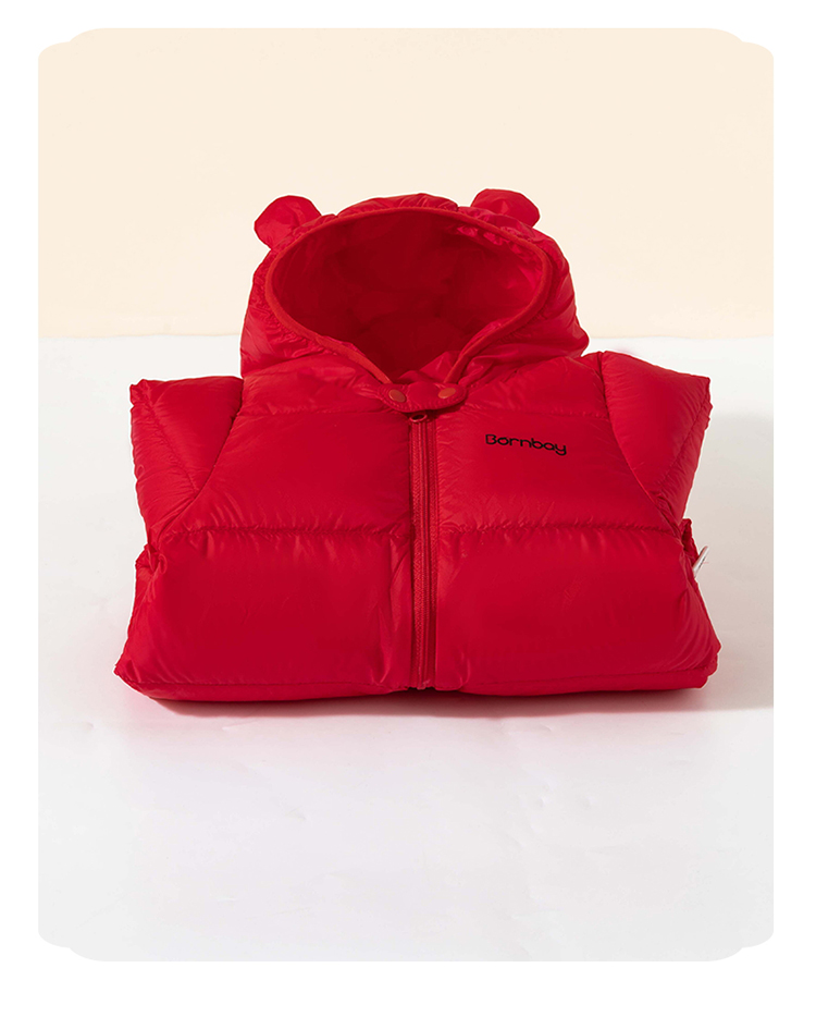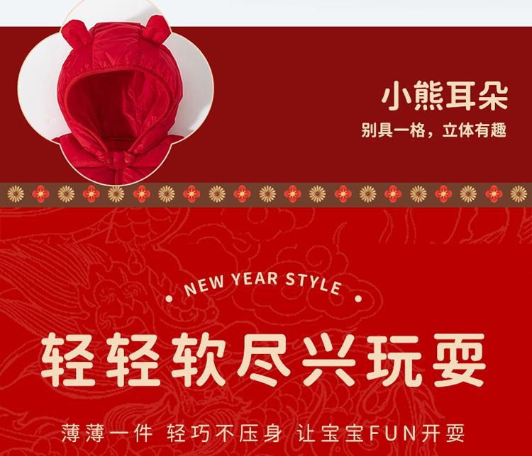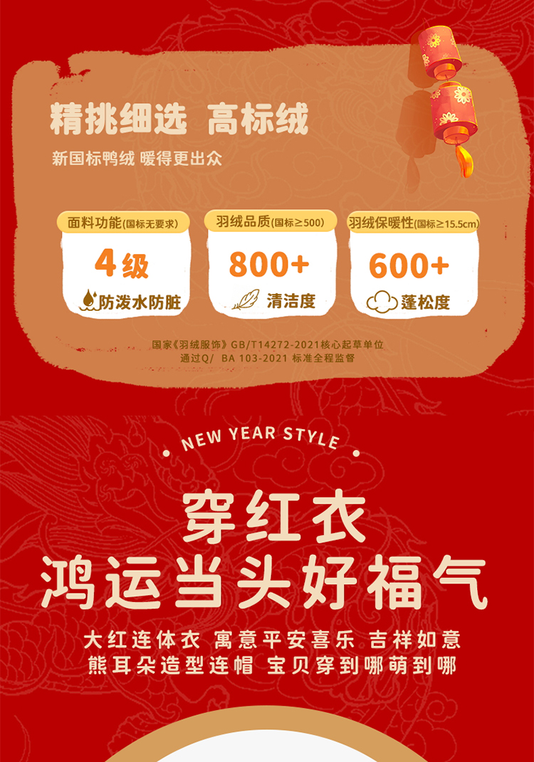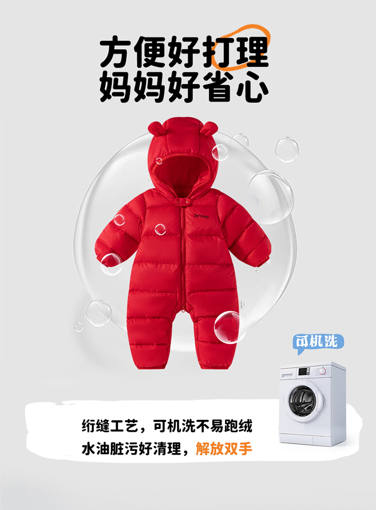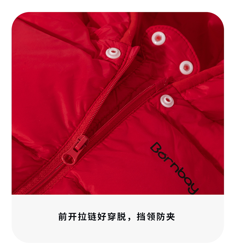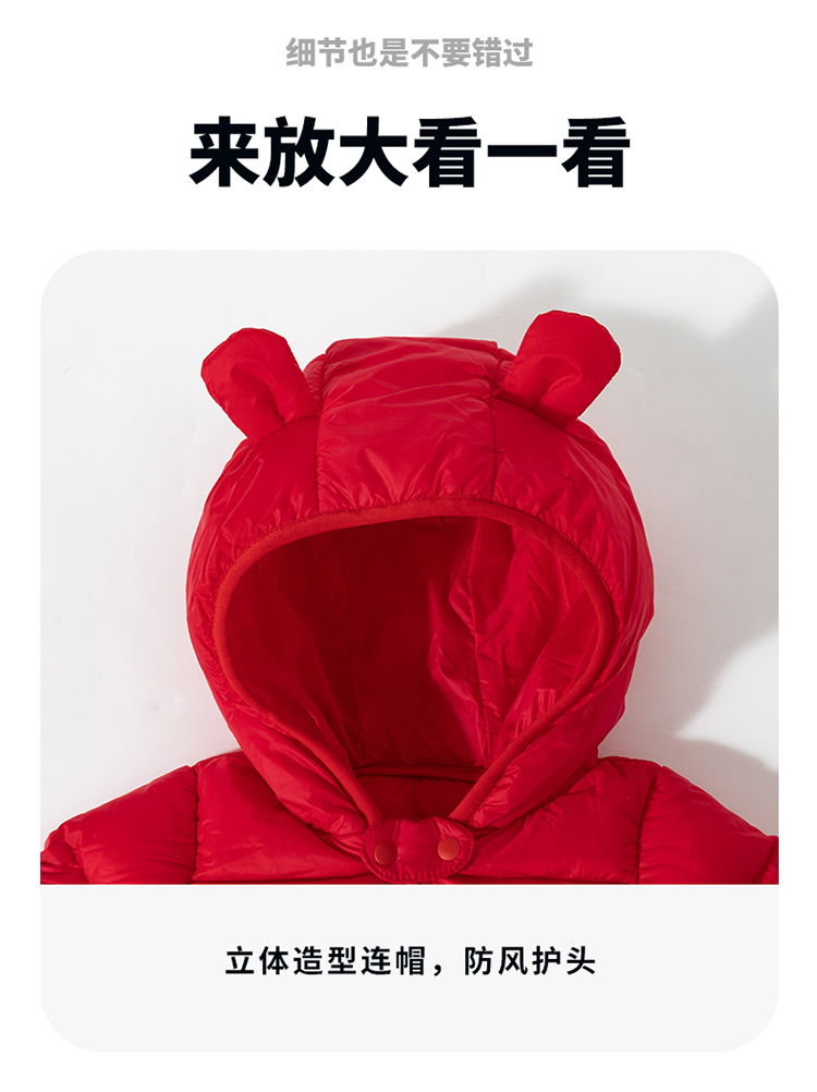 贝贝怡【防风轻暖】冬季新款男女宝宝羽绒连体衣大红哈衣新春拜年服ZB4DL075