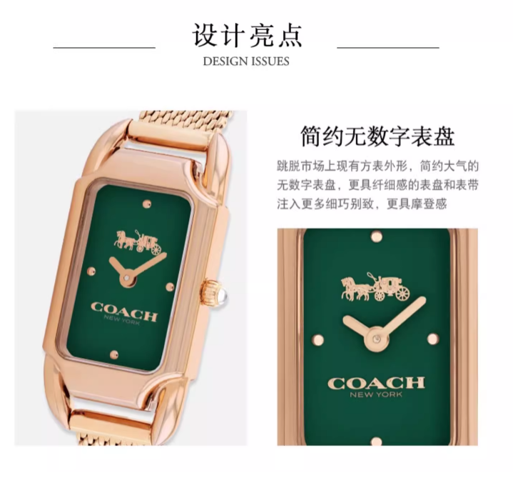 美国COACH蔻驰 CADIE系列复古小方表/PARK帕克系列小圆表 经典造型 皮带/钢带可选 石英表防水 一对一中检鉴定!