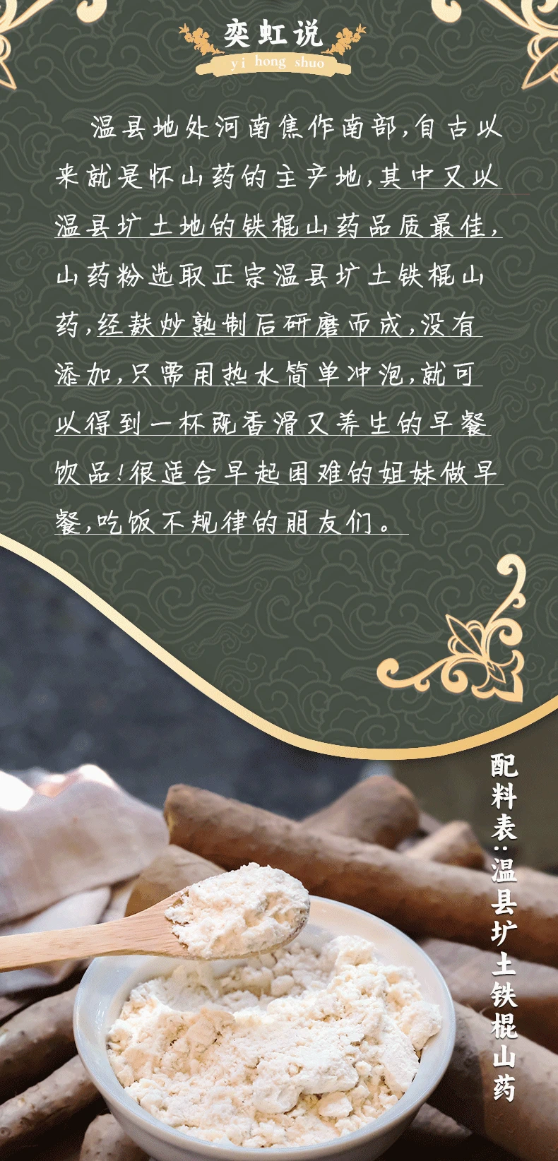 【奕虹定制山药粉】正宗熟制温县垆土铁棍山药粉 一冲即饮 SGS265项无农残 《神农本草经》记载“山药入药者,以河南怀庆者良”