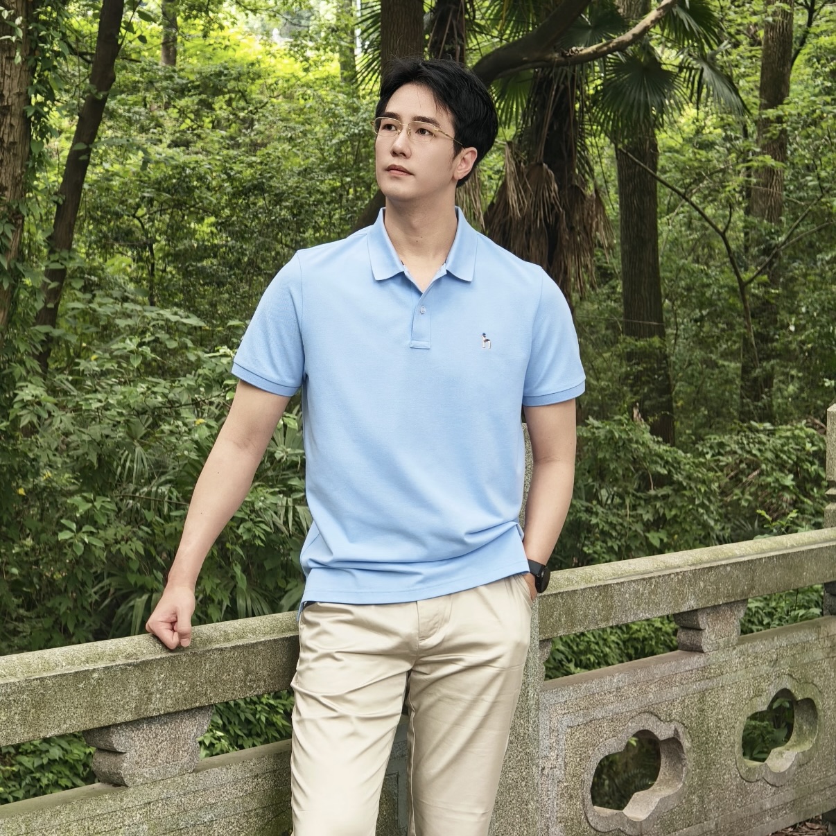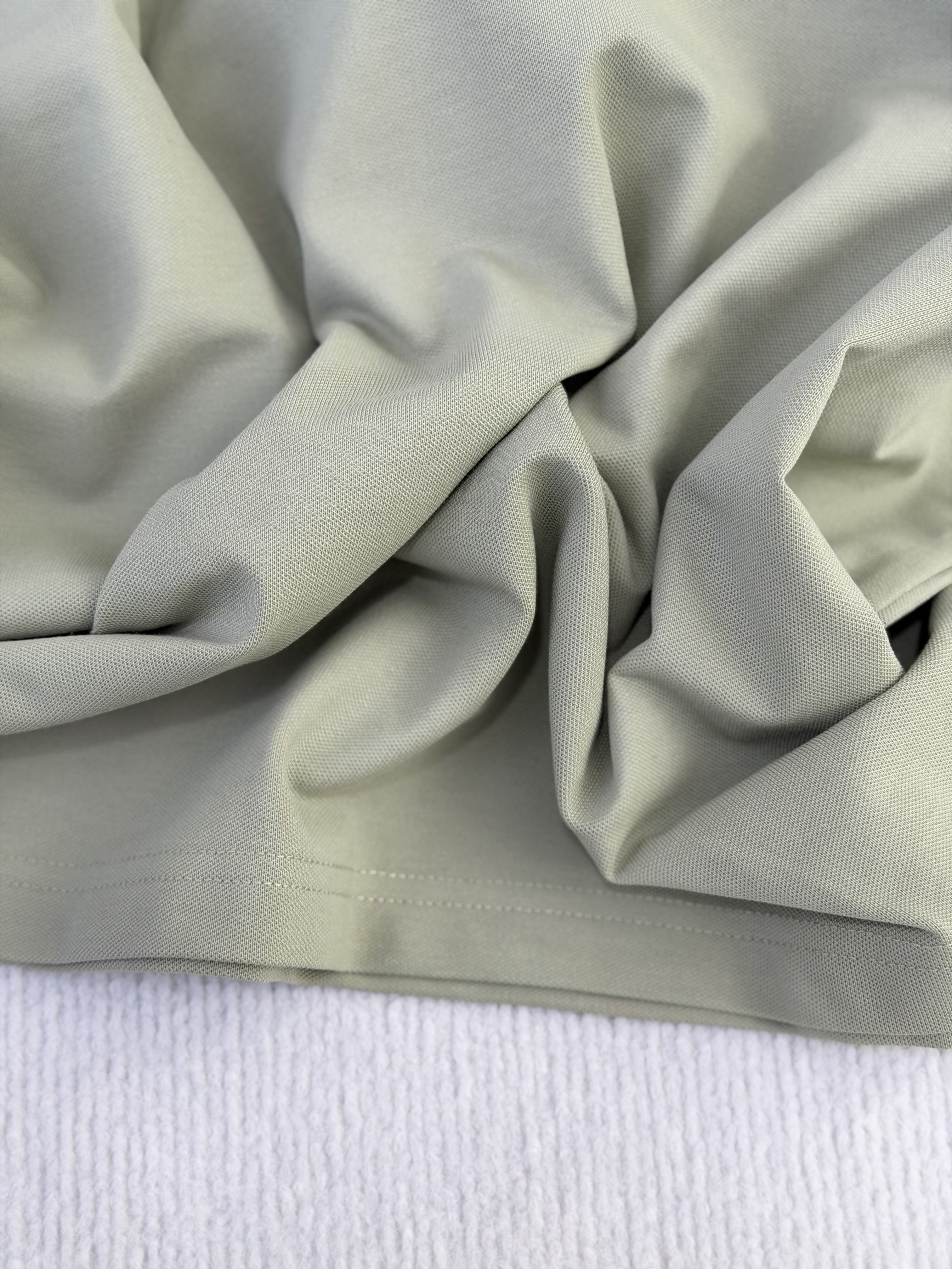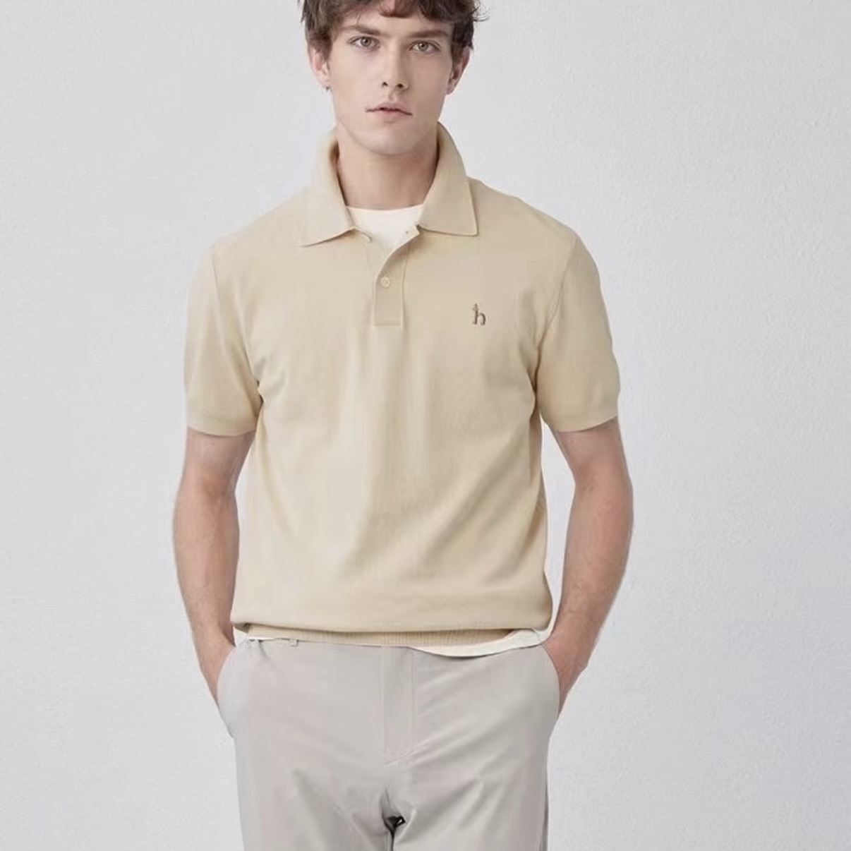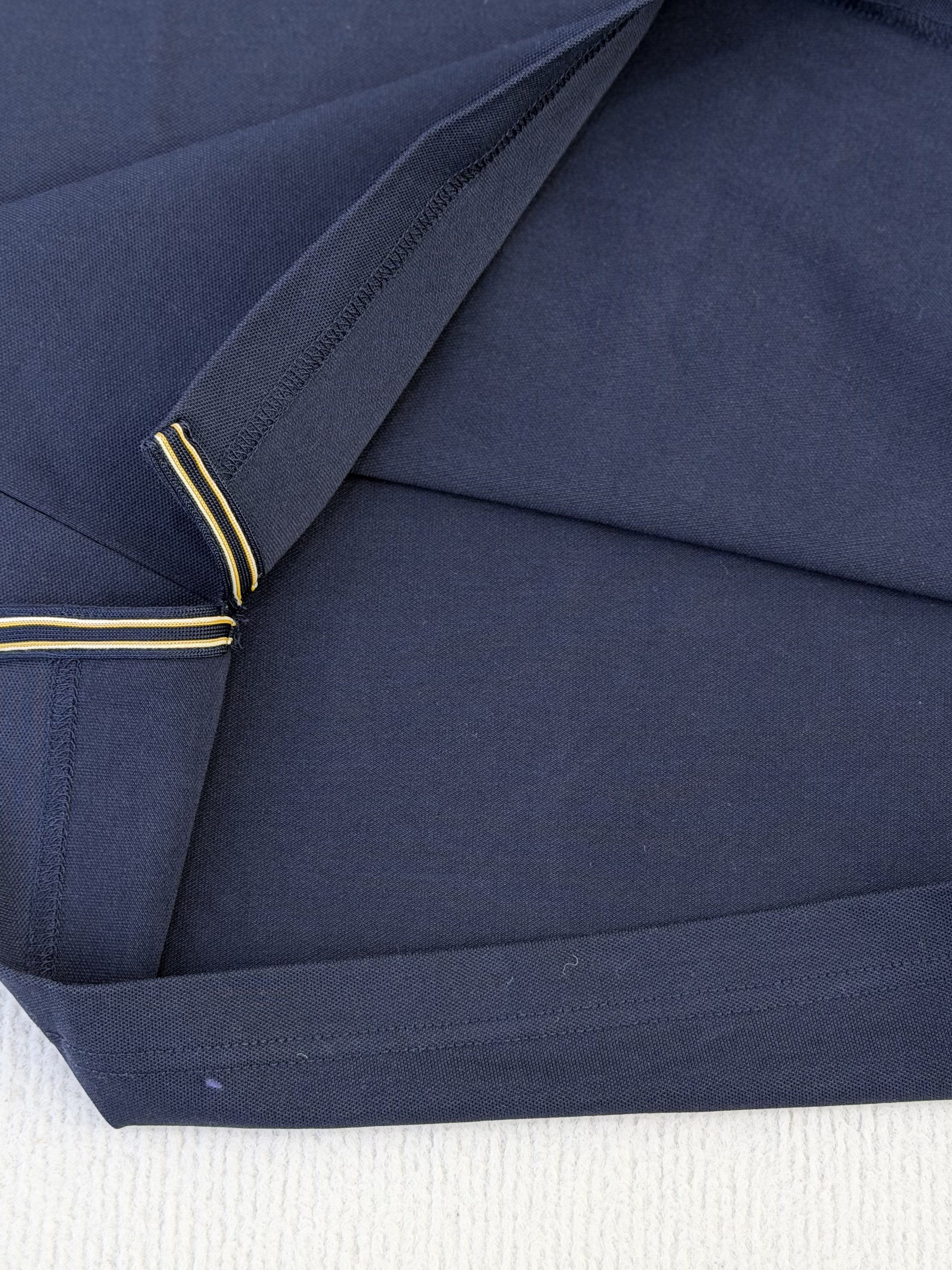 双纱珠地网眼棉,经过免熨烫处理。兼具棉的亲肤透气与混纺材质的挺括抗皱,久洗不易变形,贴身穿舒适度极高。