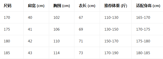 尺码170-175-180-185码