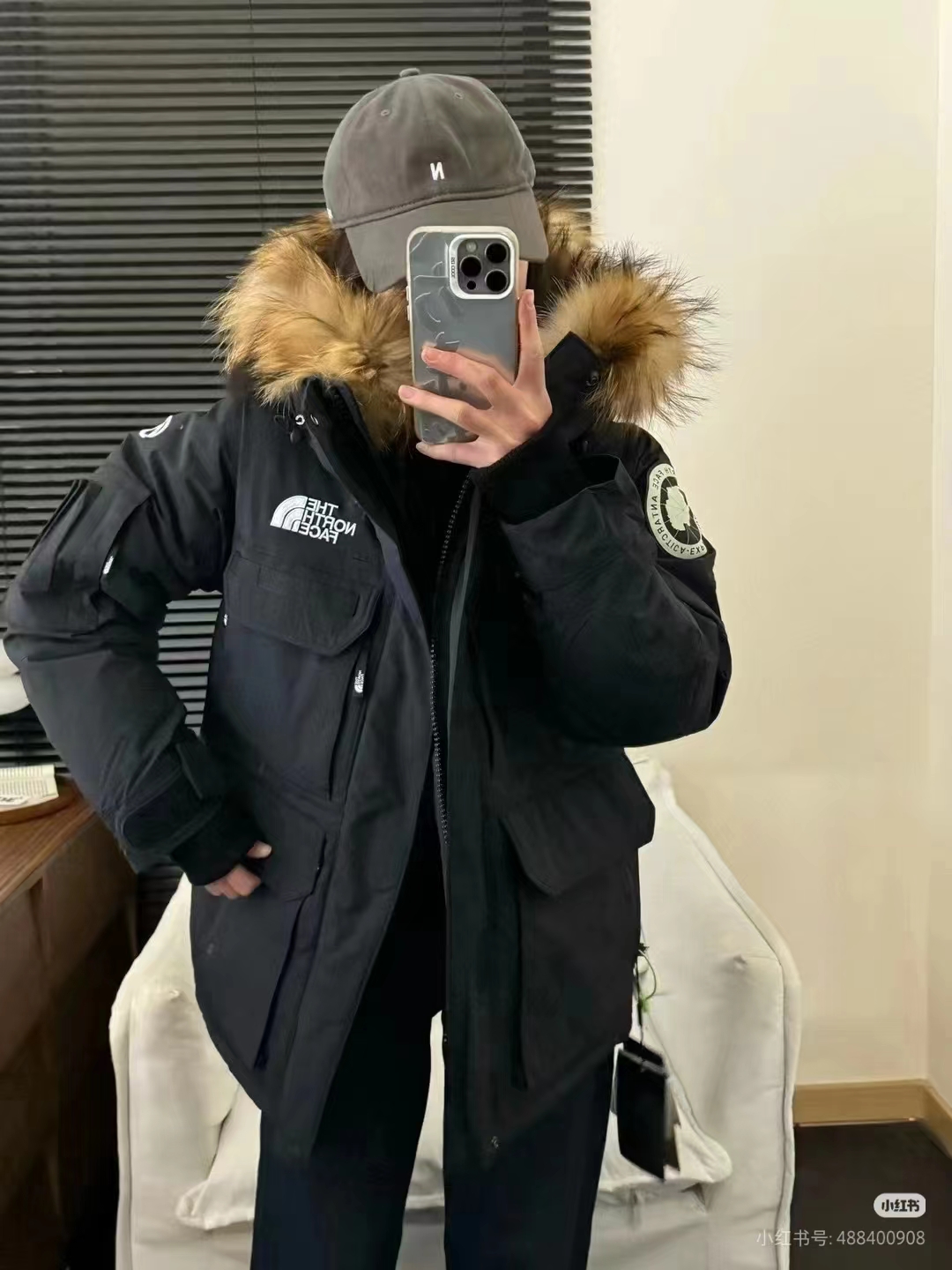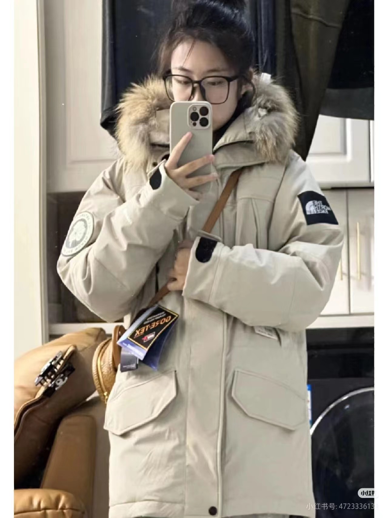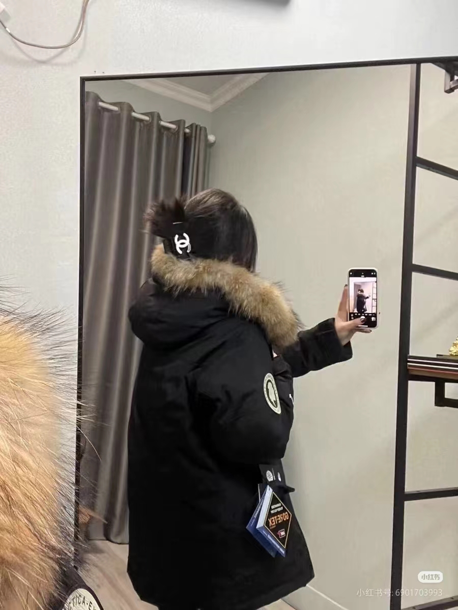 辅料:原版拆解开发,一比一定制的小标,领标,水洗,吊牌,五金等等。原装貉子毛毛领。