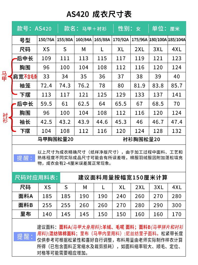 裁缝学苑AS420 中式国风长比甲纸样琵琶袖衬衫女装上衣版型样板图