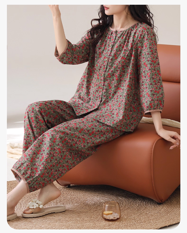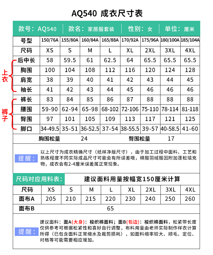 裁缝学苑AQ540梭织棉纱布睡衣纸样家居服圆领七分袖打版裁剪图