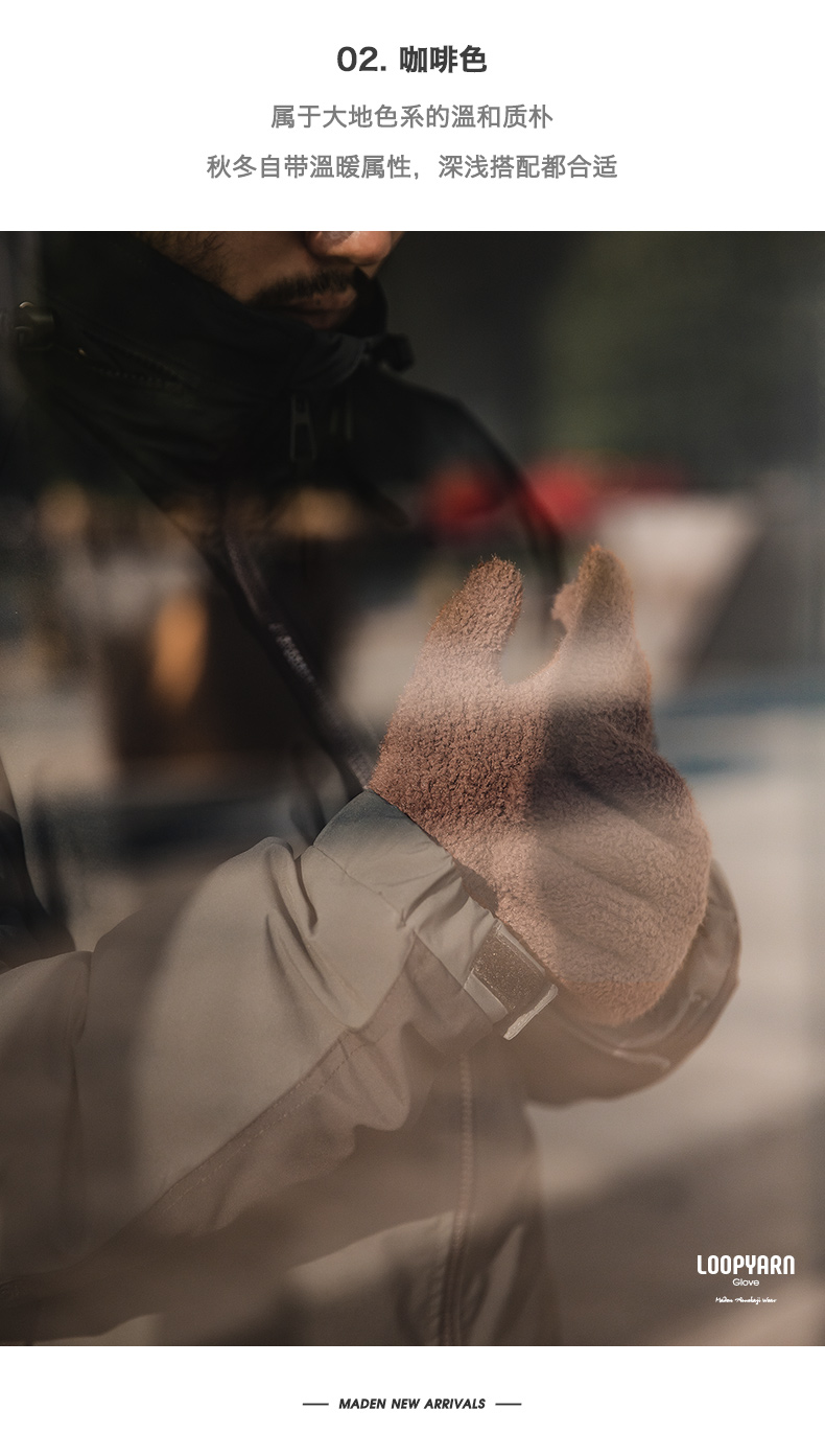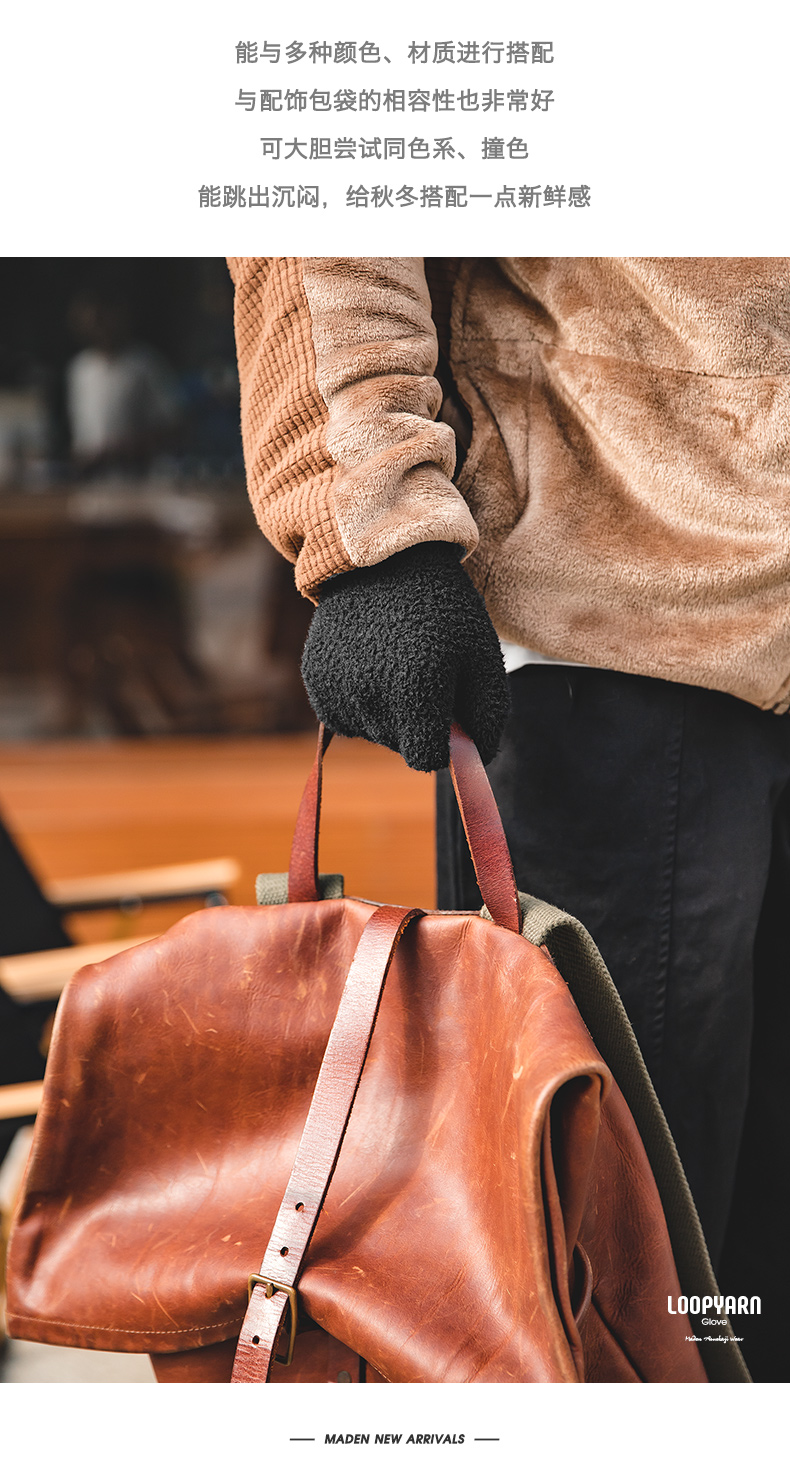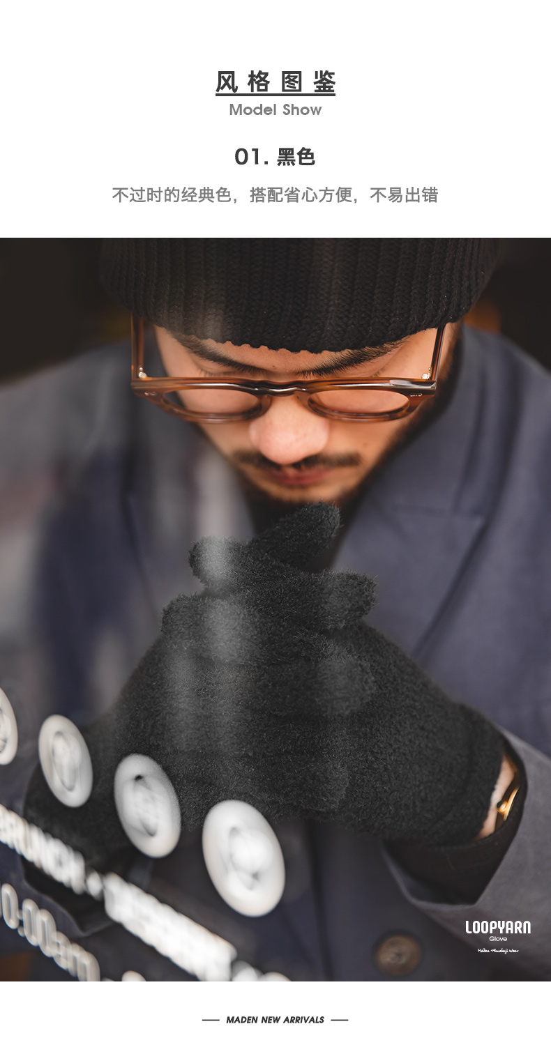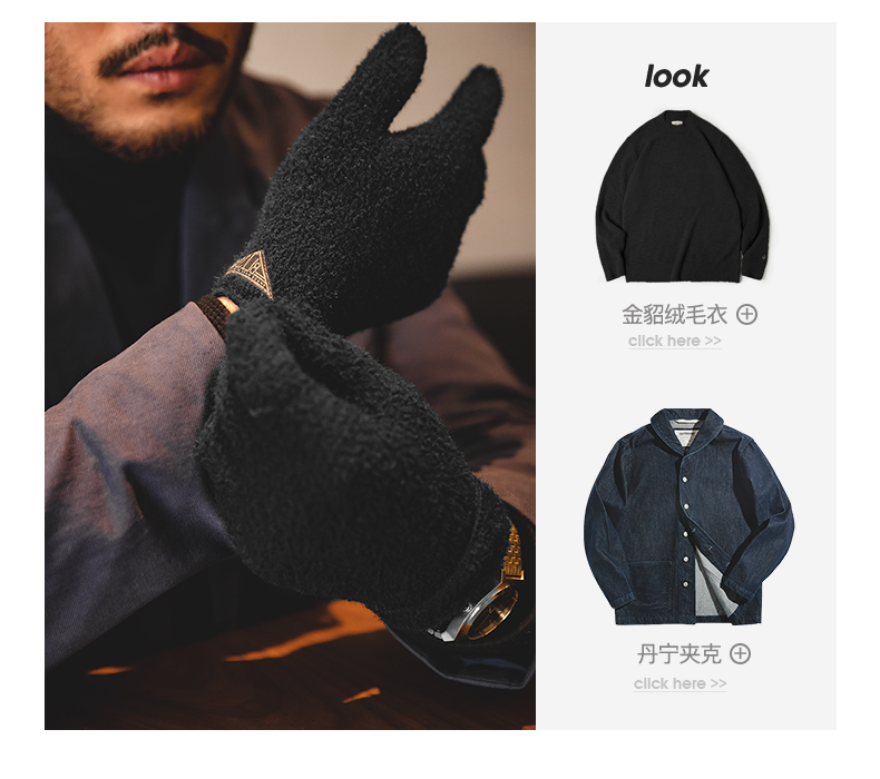 工装精选美式复古黑色金貂绒针织全指手套防风防寒保暖手袜男秋冬