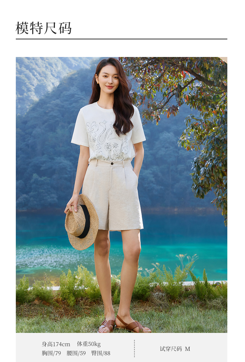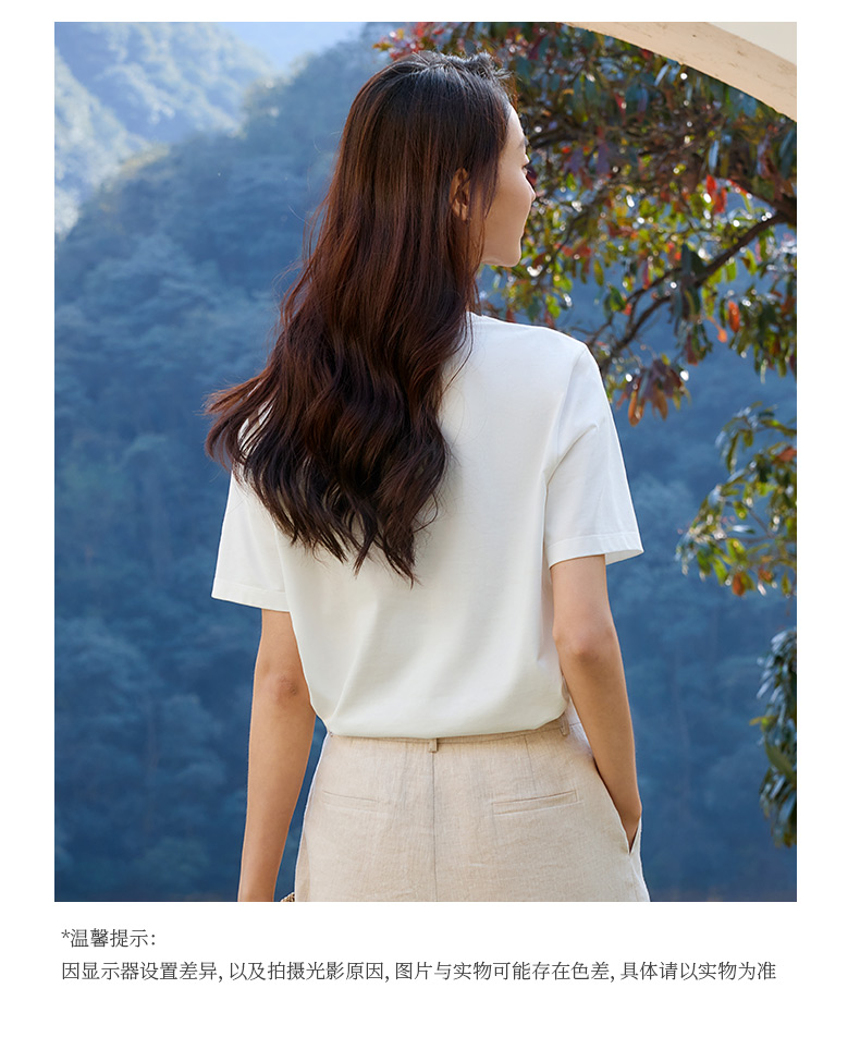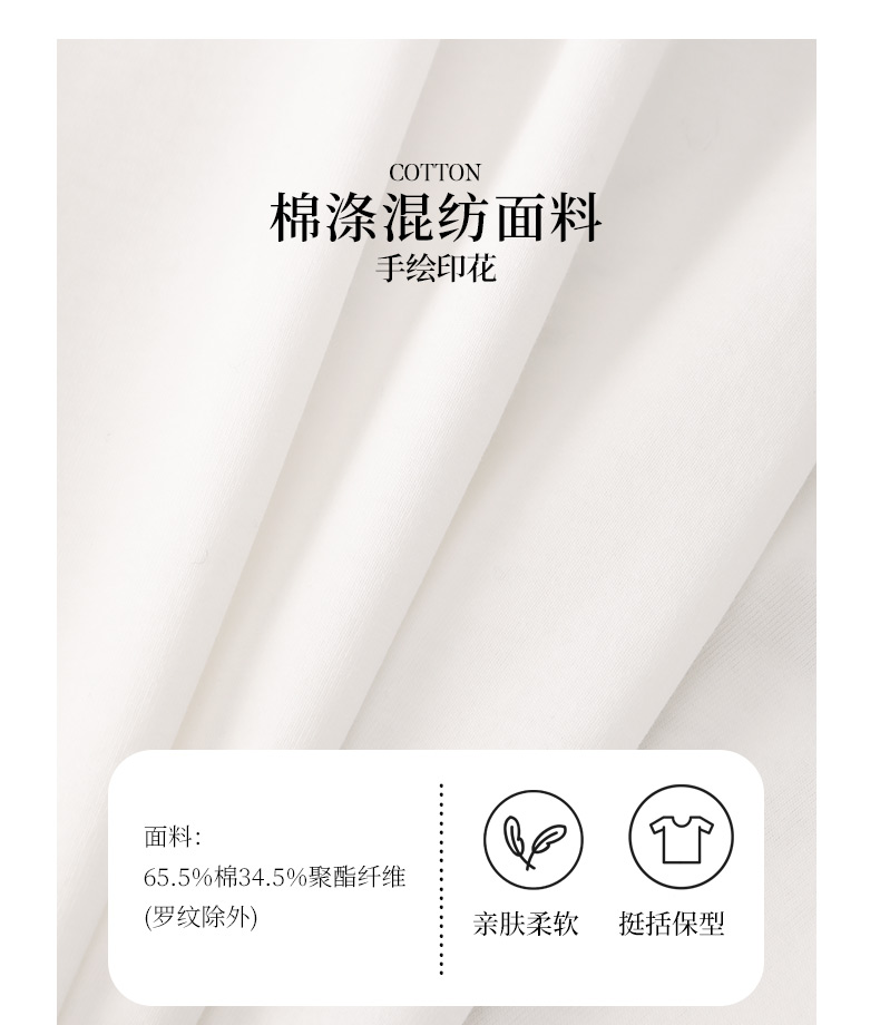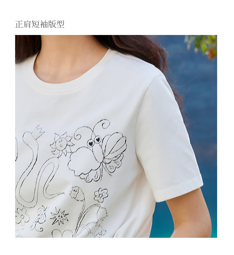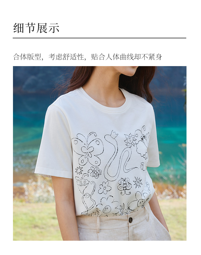 玳莎手绘风格印花T恤女2025年夏季新款时尚圆领通勤百搭短袖上衣 FB32108