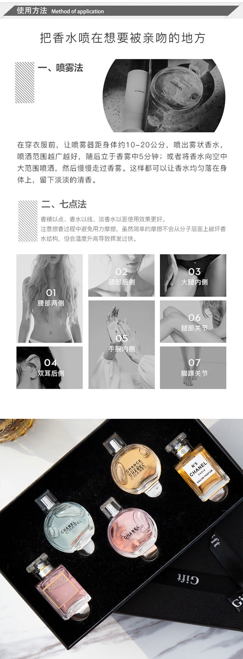 CHANEL/香奈儿邂逅香水五件套淡浓香水小样 无喷头 COCON5号7.5ml(经典套盒)黑盒 一般贸易