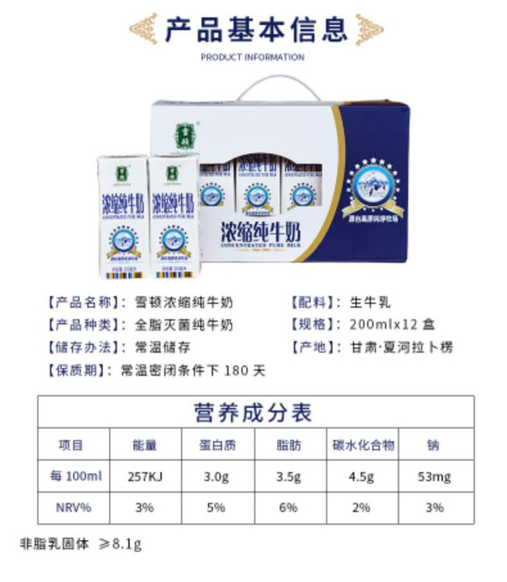 甘肃 雪顿浓缩牛奶 200ml*12