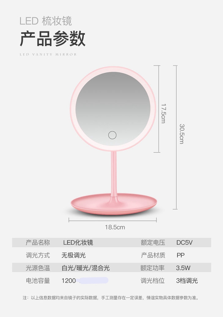 网红LED化妆镜台式带灯宿舍抖音梳妆镜女便捷随身补光美妆小镜子