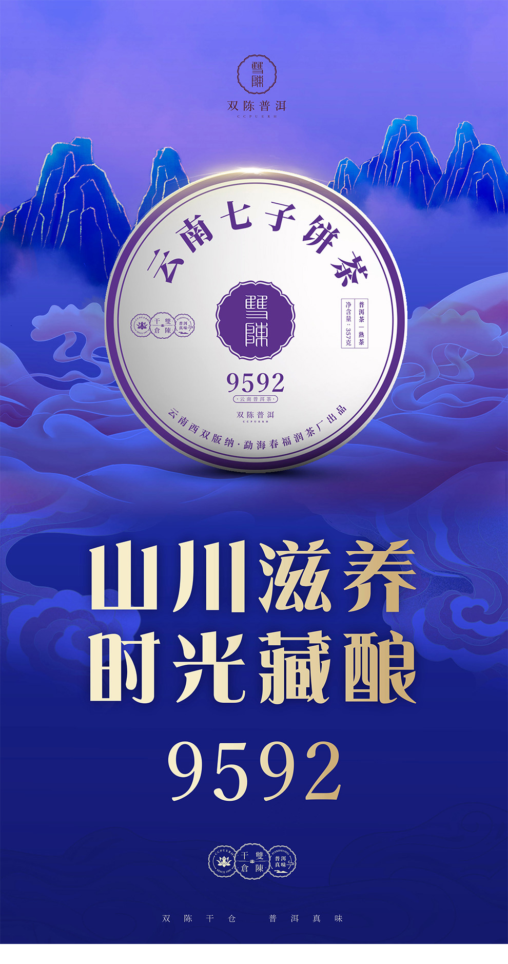 双陈普洱 2021年经典9592熟茶1饼357克云南七子饼普洱茶