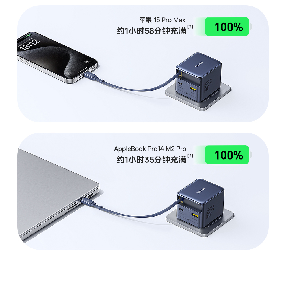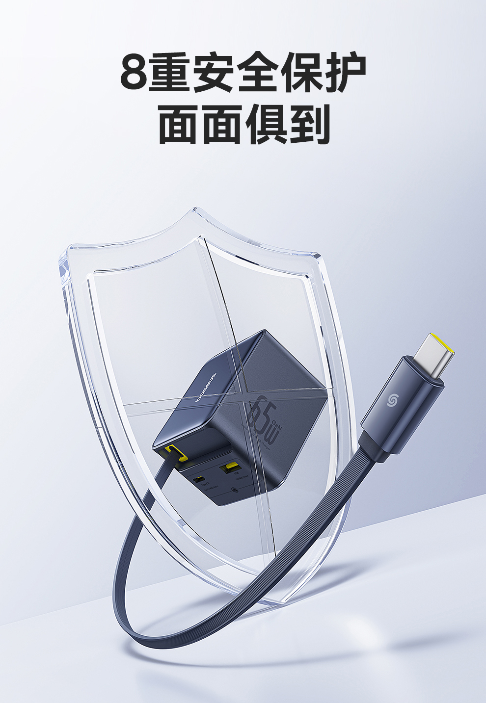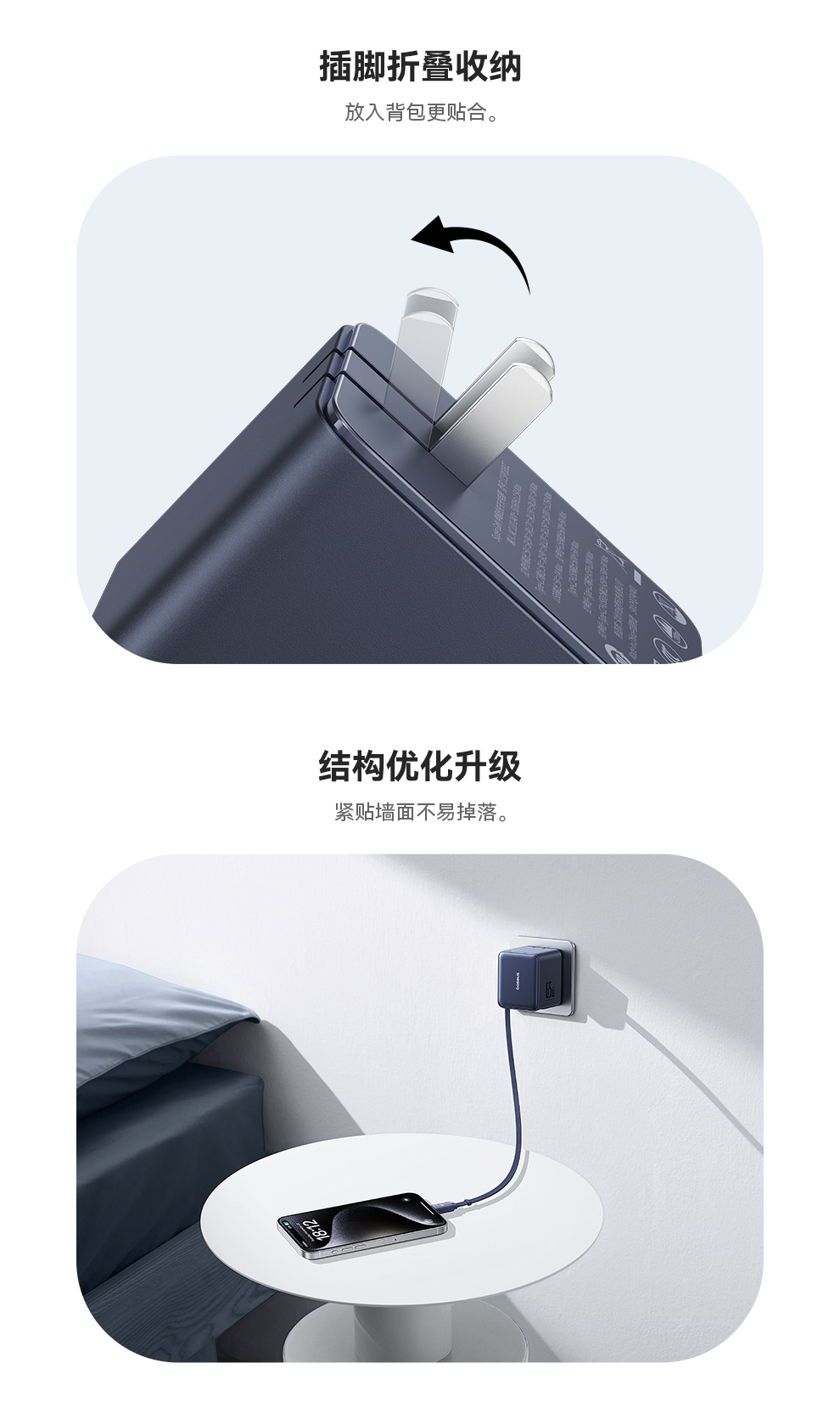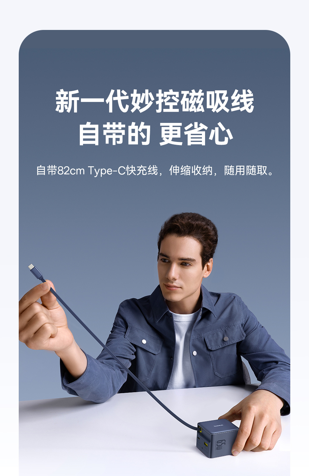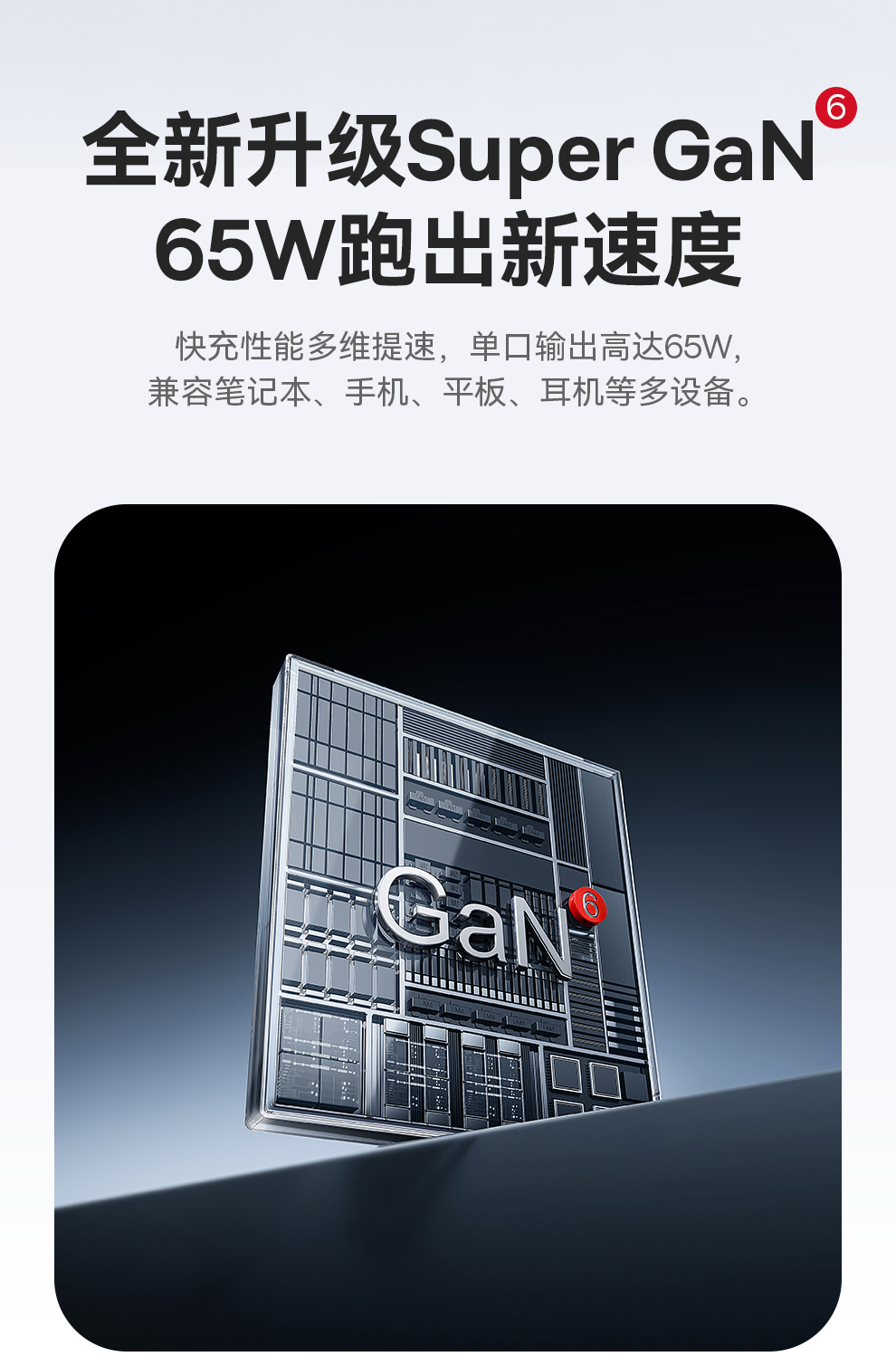 倍思 Super GaN 伸缩线快充充电器 2C+U 65W